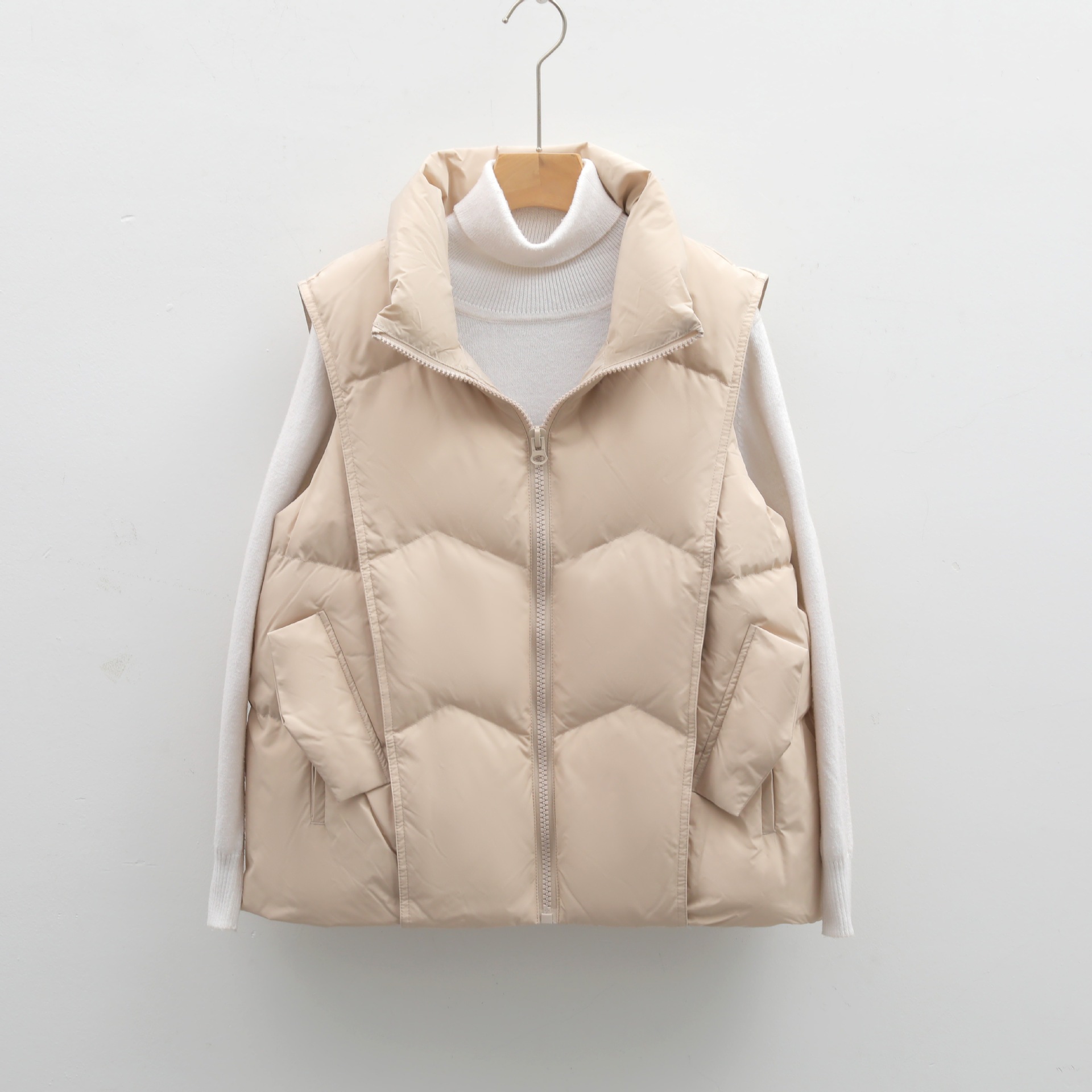 女性用ソフトマッシュルームフリースベスト無地シンプルなダウンジャケットゆったりとしたショートスタイル