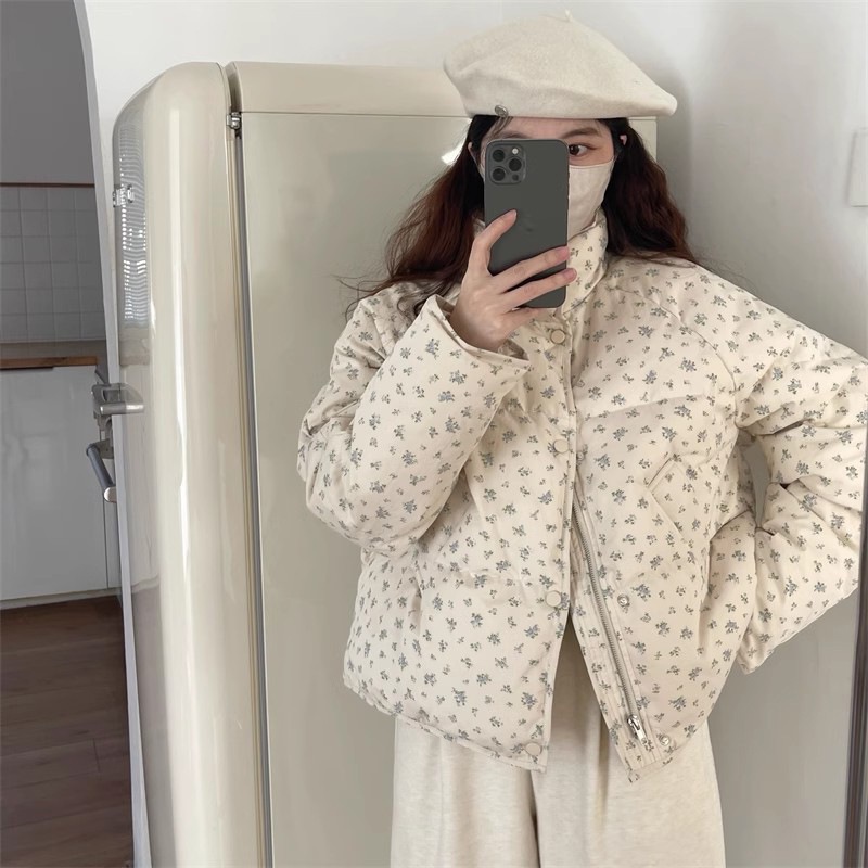 スタンドカラーの新作韓国風ショートダウンジャケット厚手のホワイトダックダウンを使用し冬にぴったりレディースカジュアルコート
