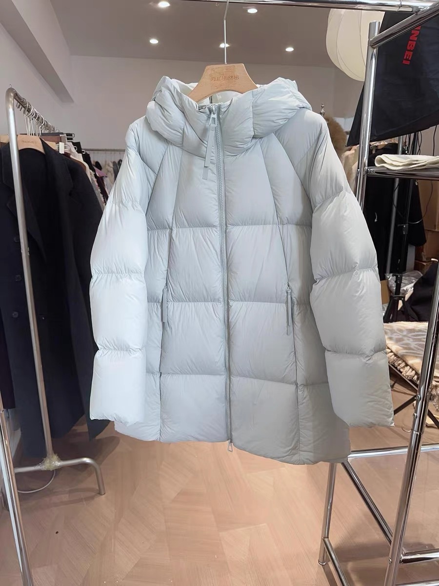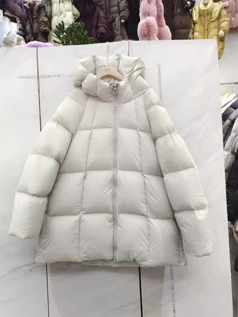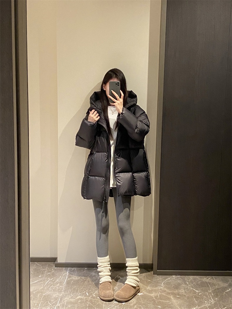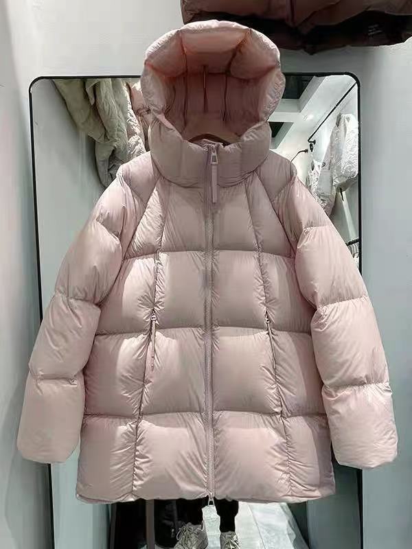 新作ホワイトダックダウン クラウドパフ フード付きタートルバックダウンジャケットミドル丈厚手カジュアルウィンターブレッドコート