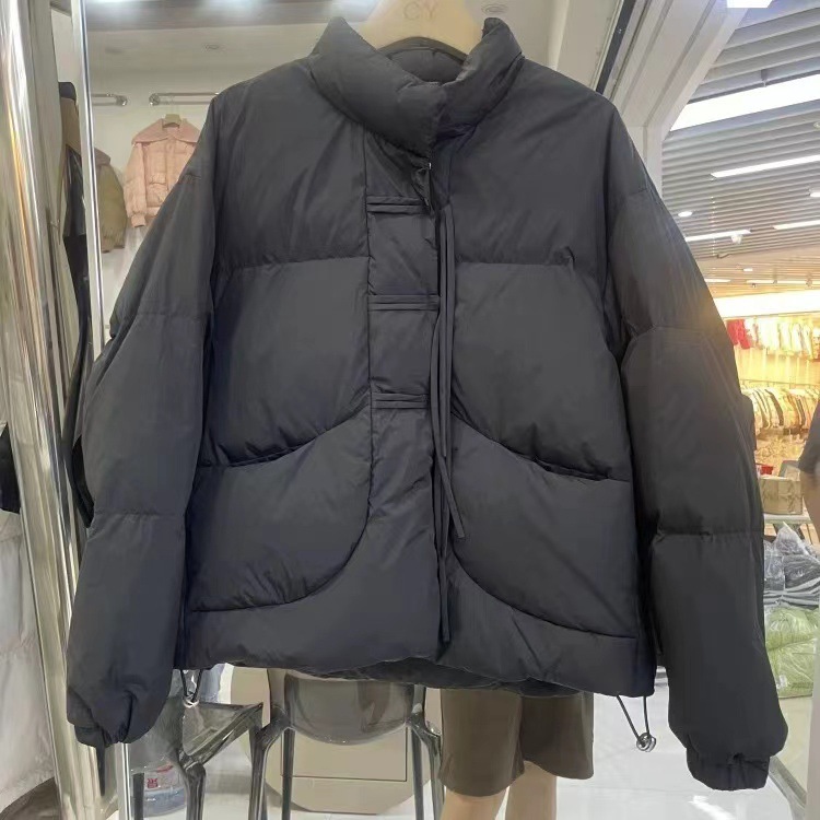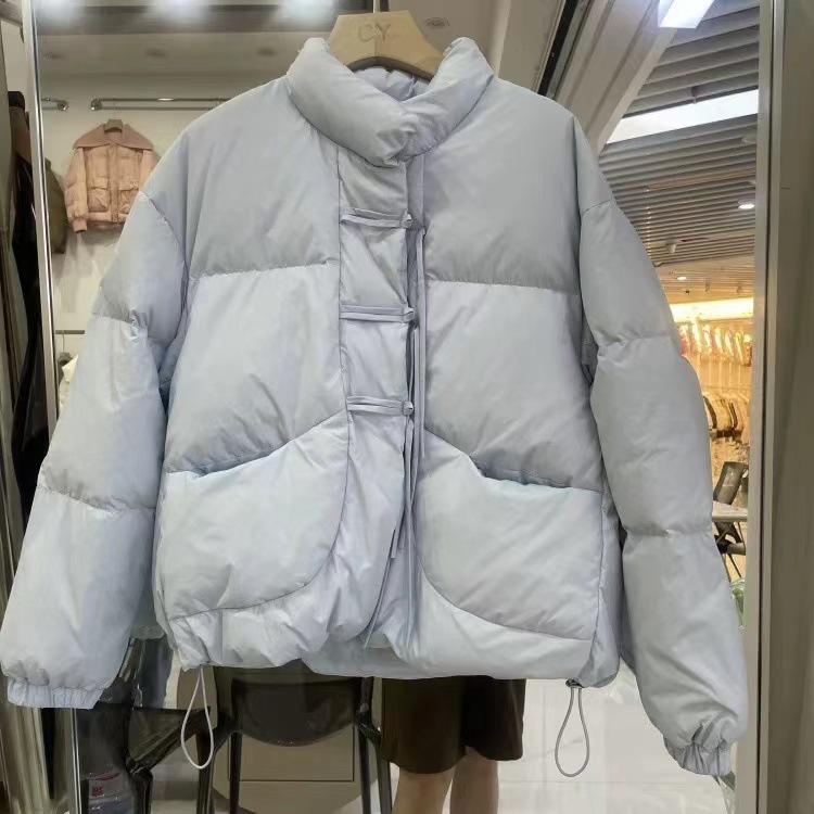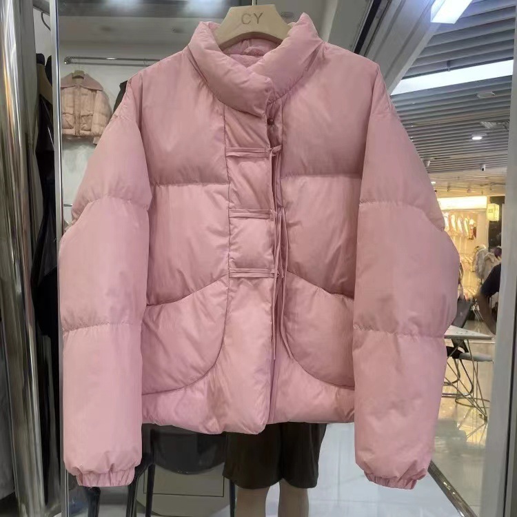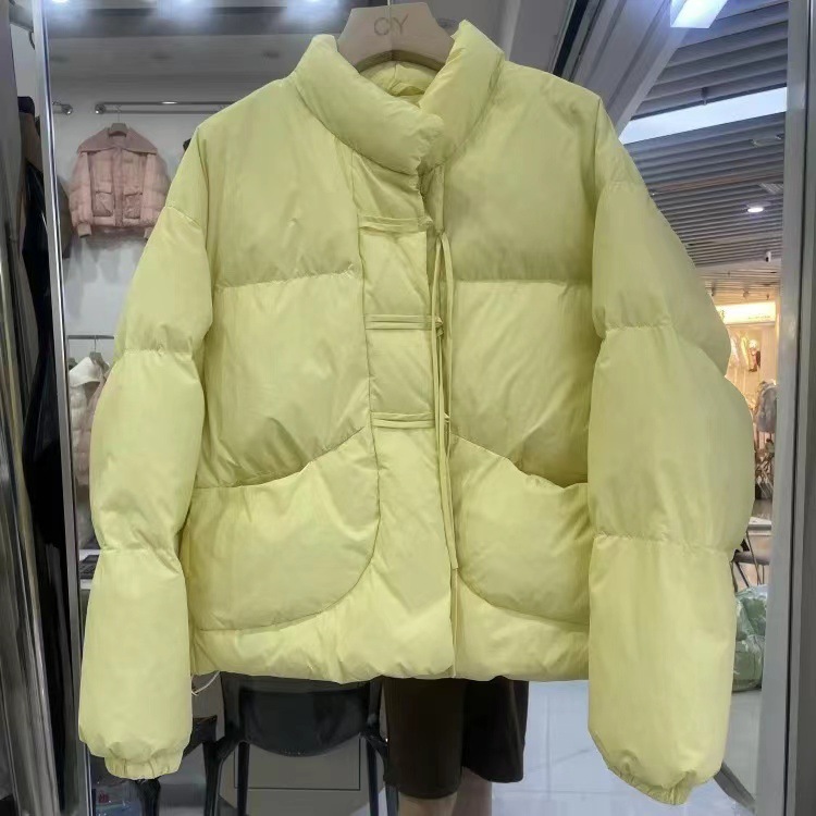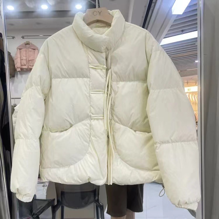 小柄な女性のための中国風のレトロなタイアップボタン付きショート丈万能暖かいダウンコットンコート