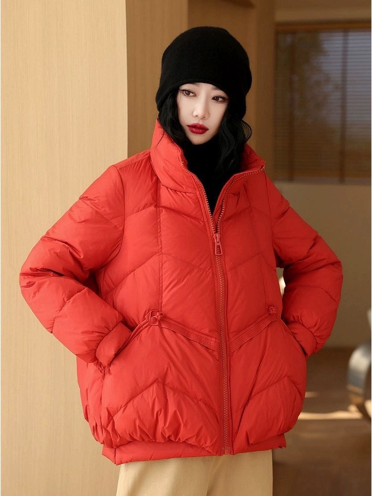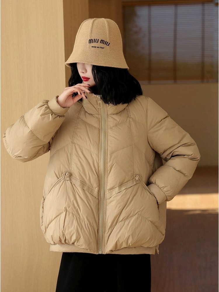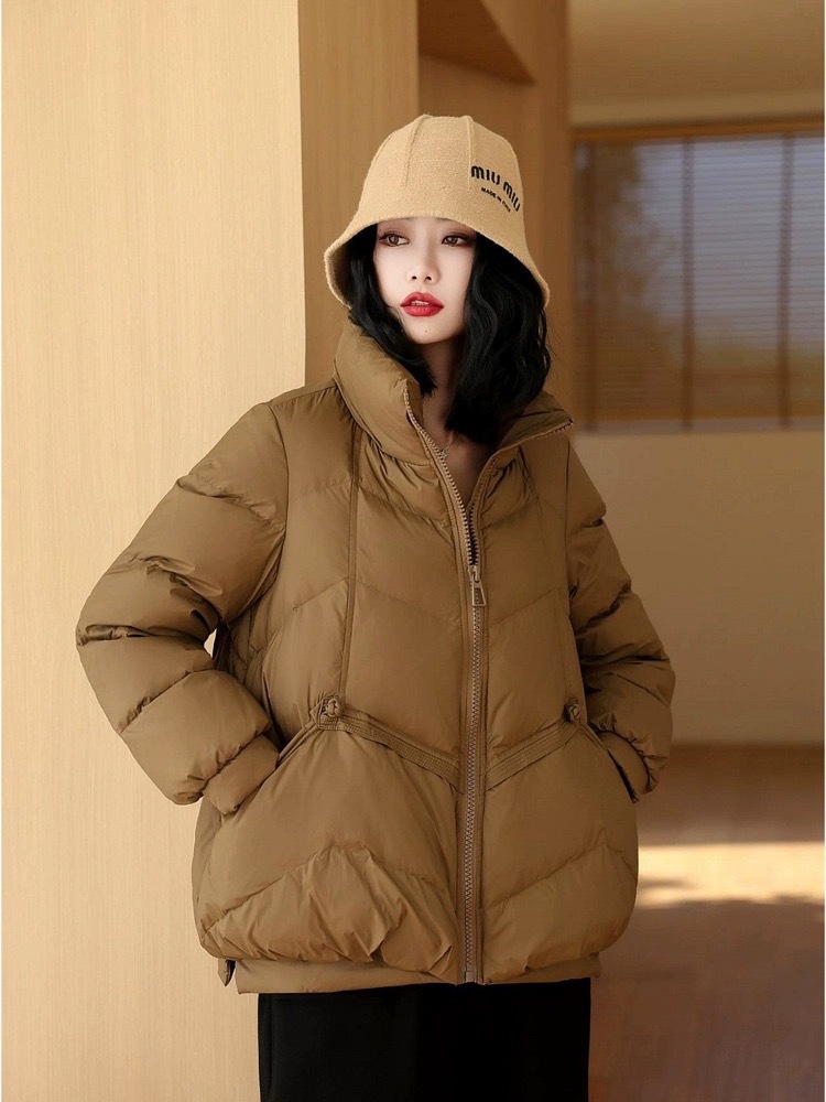 春の韓国風ファッションゆったりフィットスリムスタンドカラーショート丈ダウンジャケットレディース - 暖かくてスタイリッシュ