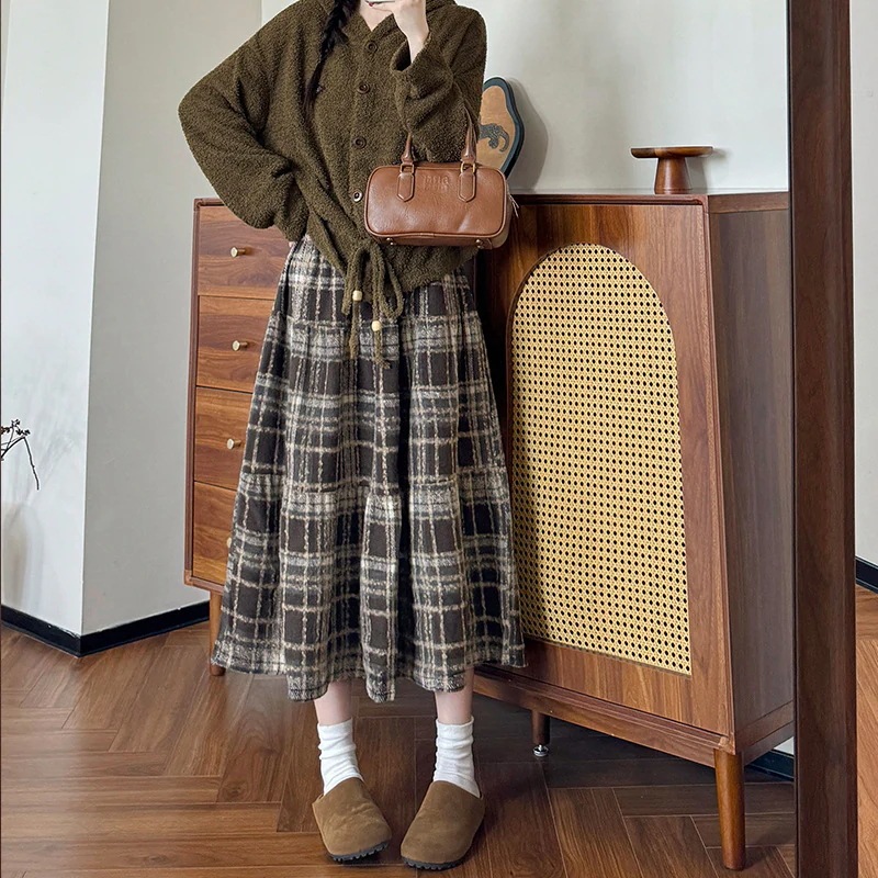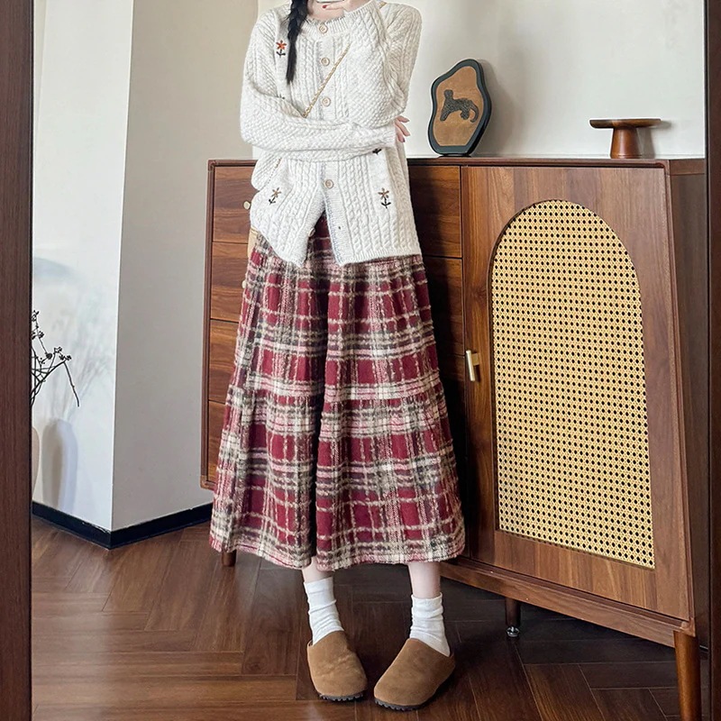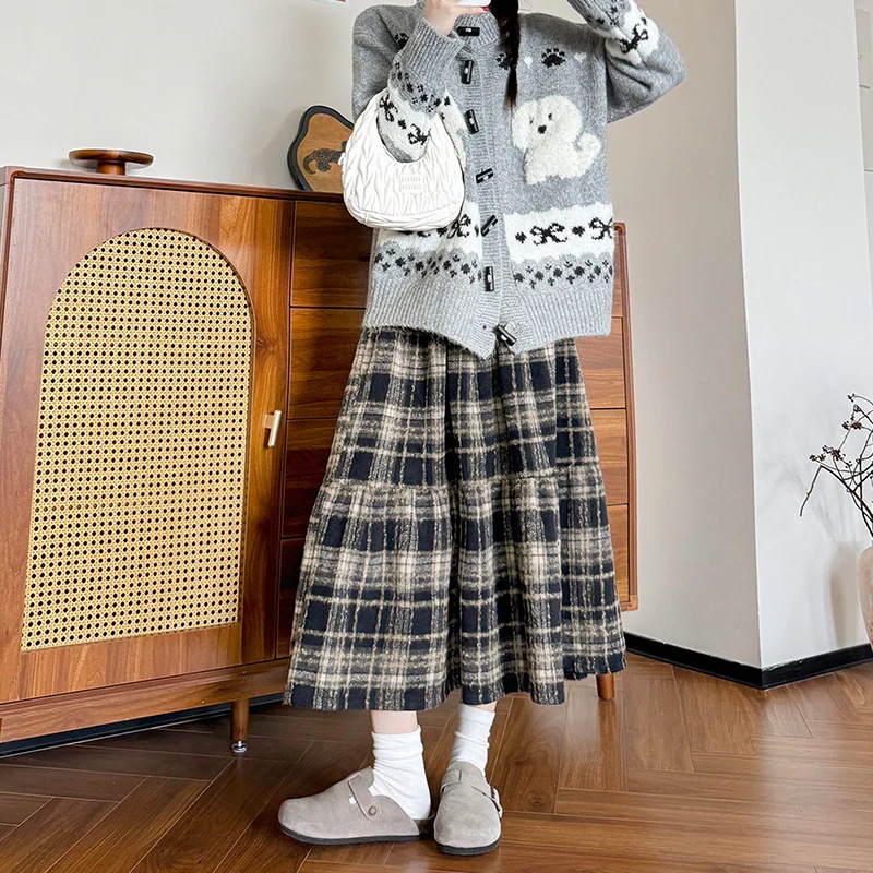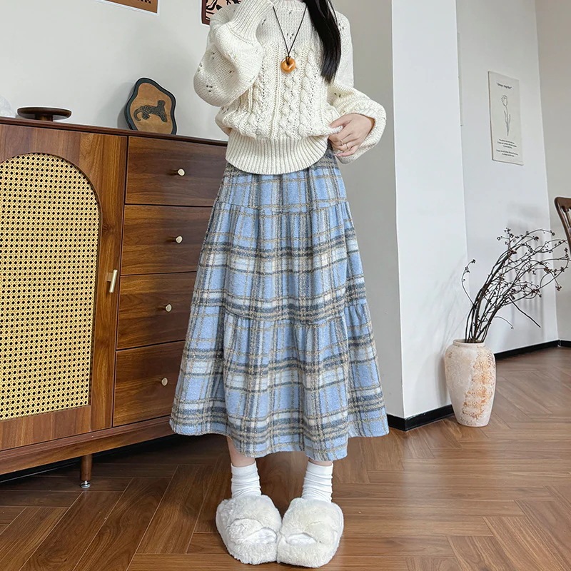 ネイビー ツイードチェック 半そでスカート レディース 秋冬 新作 ミドル丈 スキニーaラインスカート ハイウエスト スカート 韓国ファッション