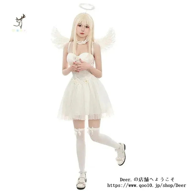 ハロウィンコスプレ限定!の白い天使ネッサスカート悪魔の黒天使羽付きロリータワンピース舞台コスプレ衣装