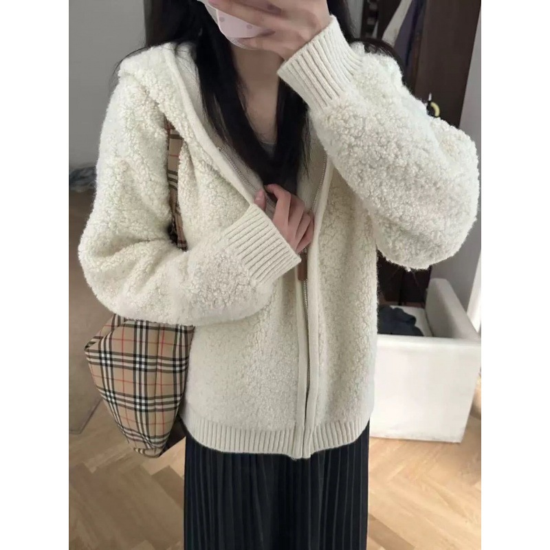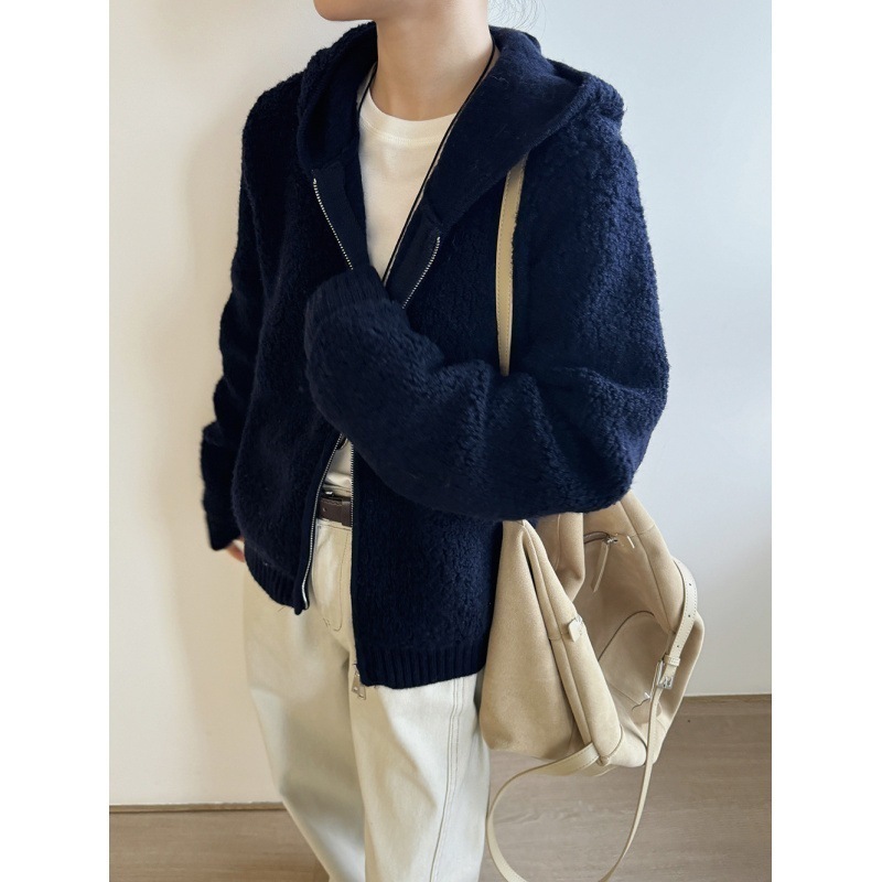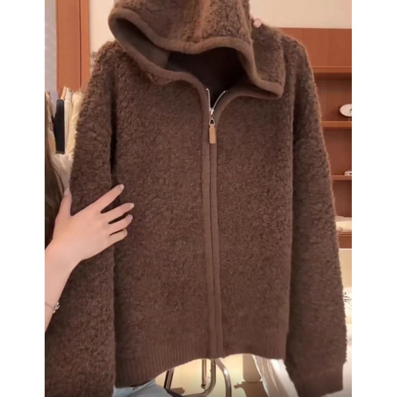 【3日出荷】加厚秋保温アライグマ毛混紡ジッパーフーデッド セーターカーデ カーディガン モヘアニット 春服 レディース母の日