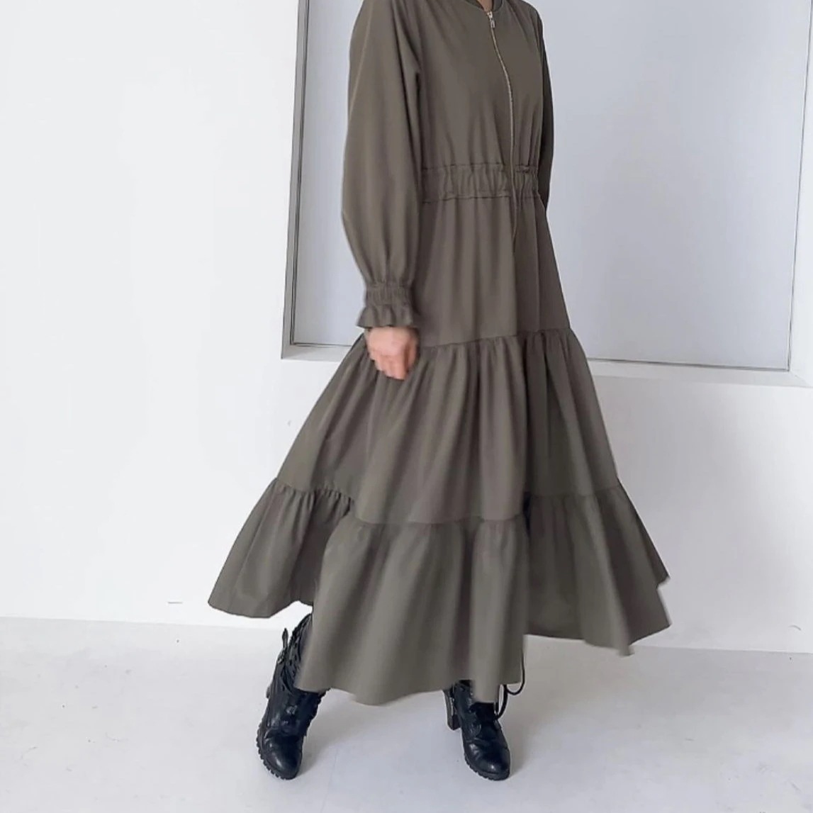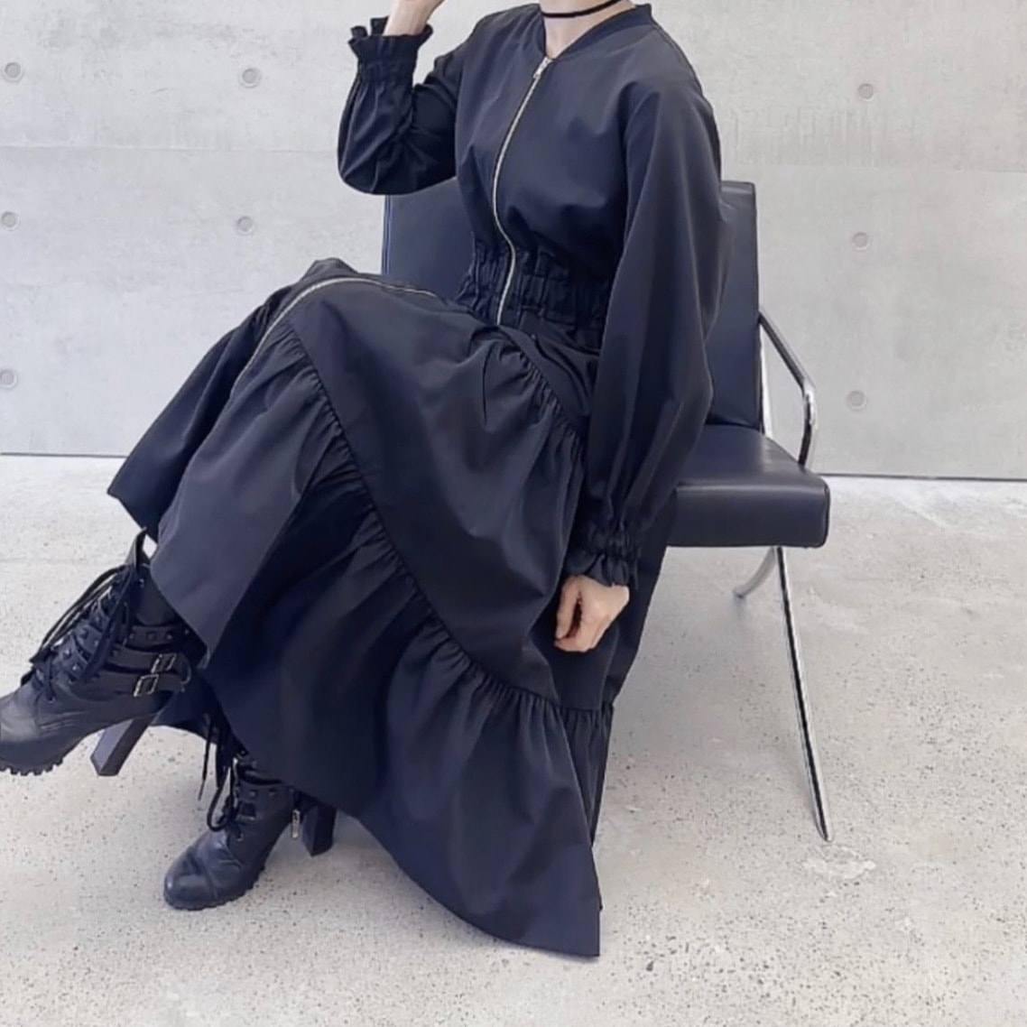 【3日出荷】ジップウエストシェイプロングワンピース 春秋新作 デザイン性 スリムフィット レディースワンピ ワンンピース