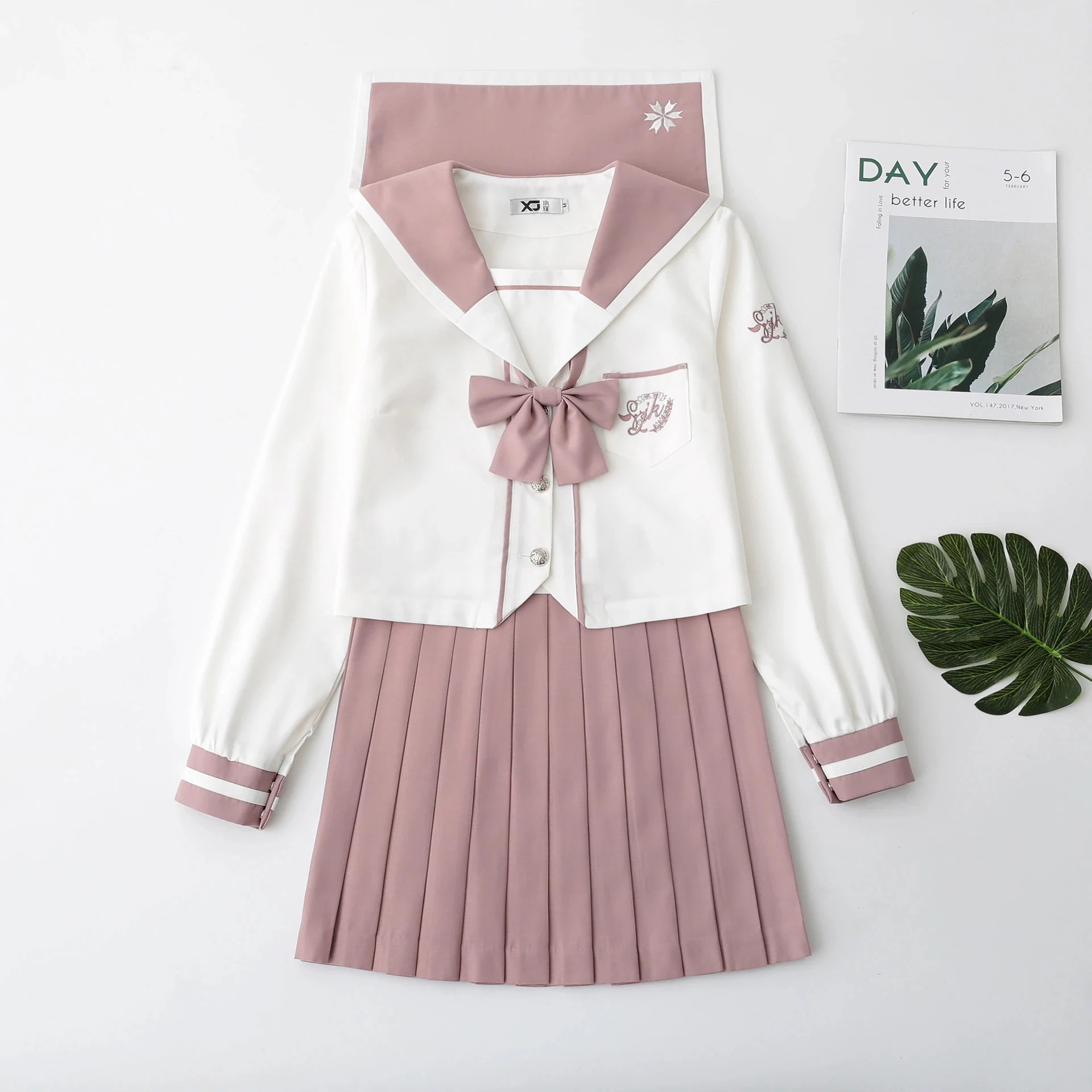 ミニ ビッグサイズ 学生制服 女子校生 大きいサイズ 女子高生 清純 学生 長袖 セーラー服 入学式 コスチューム ピンク コスプレ 韓国 リボン付き 4点セット セット 卒業式 制服