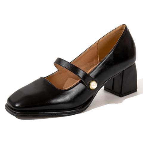 春 靴 レディース レトロ ヒールパンプス 夏 太ヒール メリージェーン靴 スクエアトゥ パンプスシングルシューズ