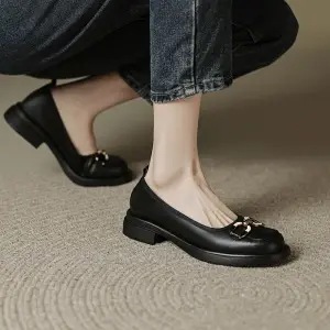 ワンペダル靴 ヒールパンプス レディース 靴 ローファーラウンドトゥ パンプス ローヒール