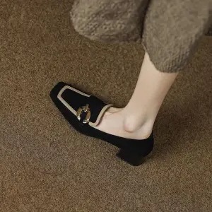 ヒールパンプス 切り替え レディース レトロ 靴 スクエアトゥ ローファー フレンチヴィンテージ