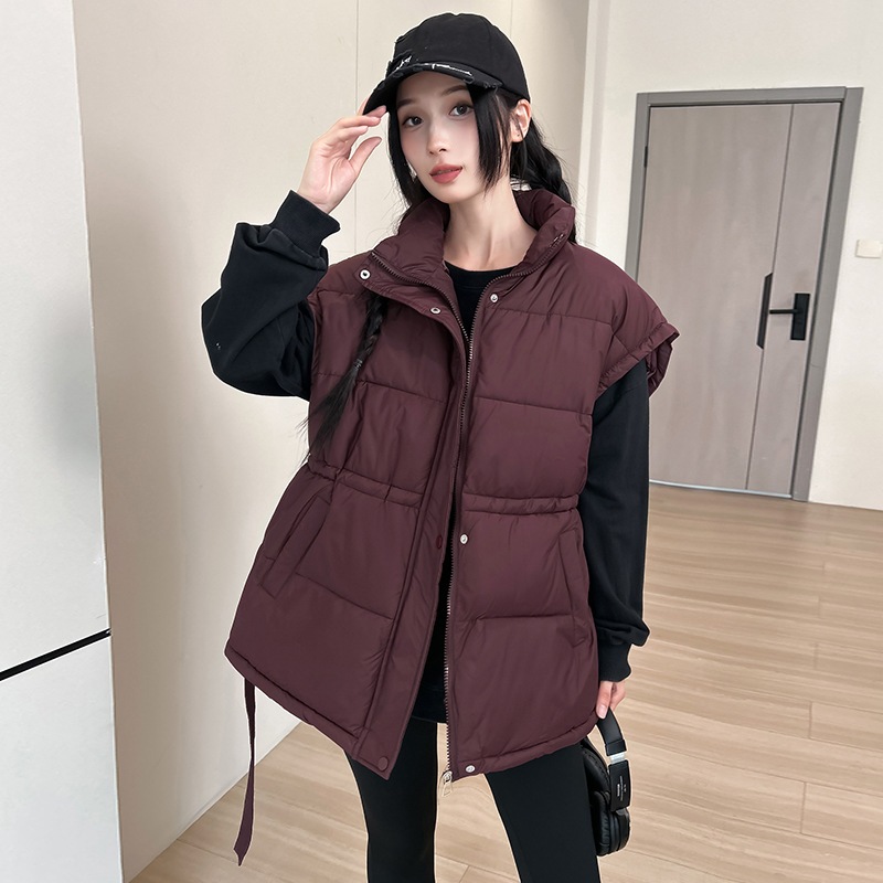 【学園風 韓国風】秋冬ダウンコットンベスト レディースゆったり紐付きウエスト 無地カン肩キャミ