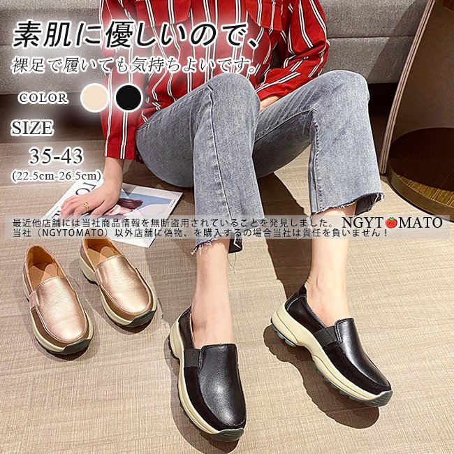 INスリッポン レディース ローファー モカシン スニーカー 厚底 PU 黒 シンプル 通学 通勤 美脚1659
