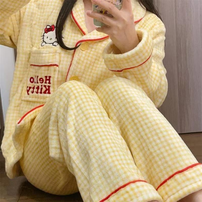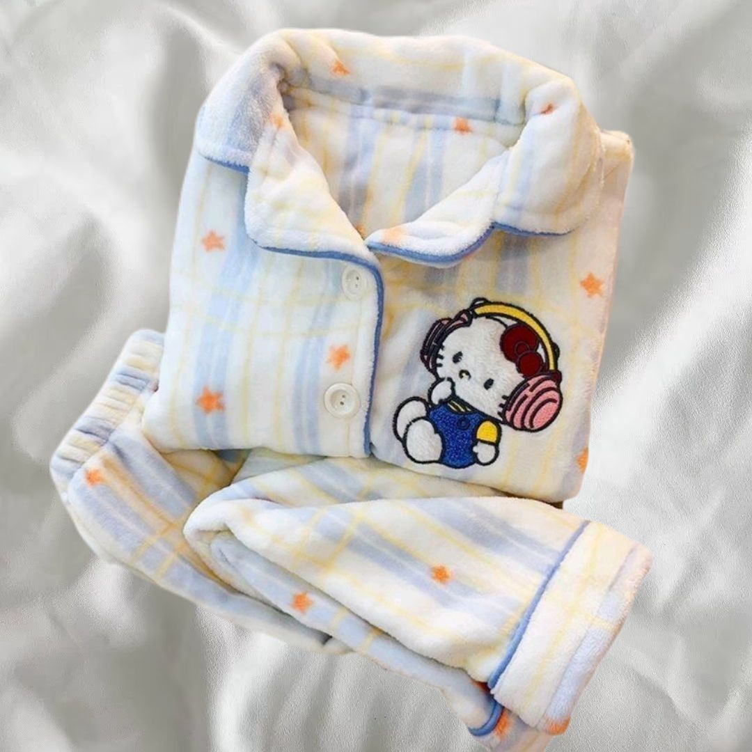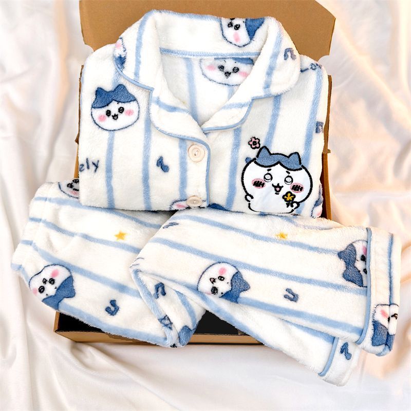 ちいかわ キティちゃん パジャマ 裏起毛 ルームウェア子供/大人 セットアップ 上下セット もこもこパジャマ 着ぐるみパジャマ 超保温 ふんわり 部屋着 大人気