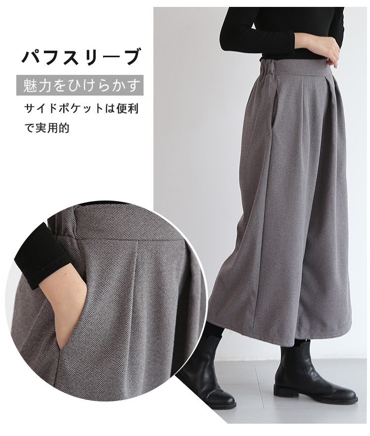 【全店任意2枚購入で100円OFF】秋冬 新 作キュロット パンツ ゆったり ワイドパンツ 九分丈 パンツ ツイード ウエスト ワイドパンツ