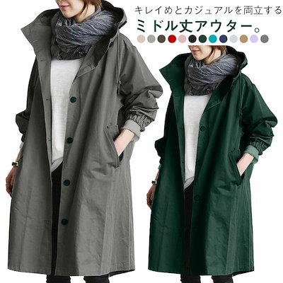 初回限定トレンチコート レディース 春 スプリングコート ロング フード付き おしゃれ コート 大きいサイズ シンプル 大人 アウター ミドル丈コート 秋 トレンチ 通勤 カジュアル 体型カバー 上品