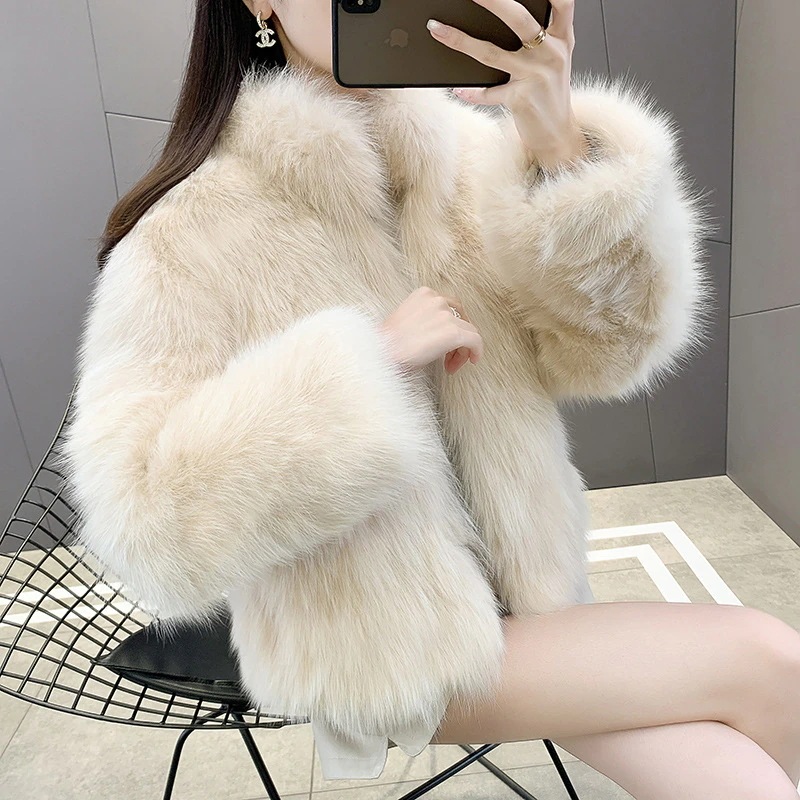 人气新作 韓国ファッションフェイクファーコート 新作冬用スタンドカラーおしゃれファーコートショート厚手モコモココート