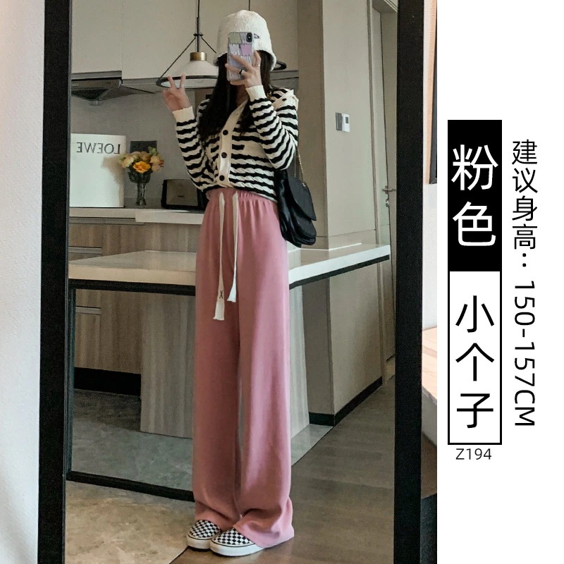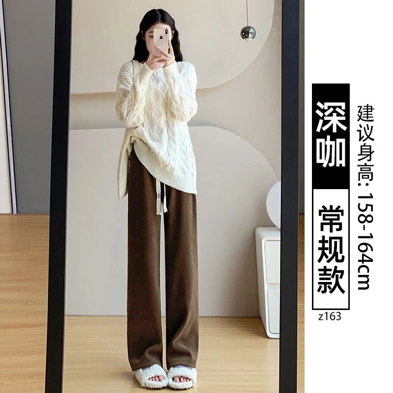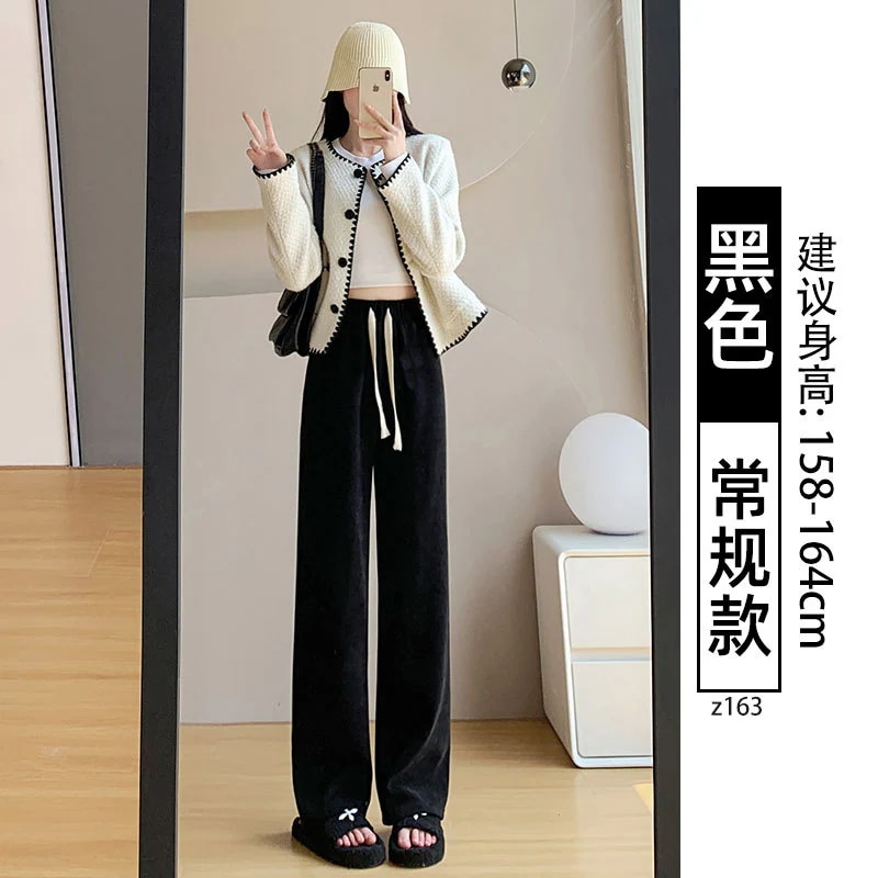 レディースワイドレッグラムフリースパンツ2025年秋冬新作裏起毛で厚手のコットンパンツグレーコーデュロイストレートレッグパンツ