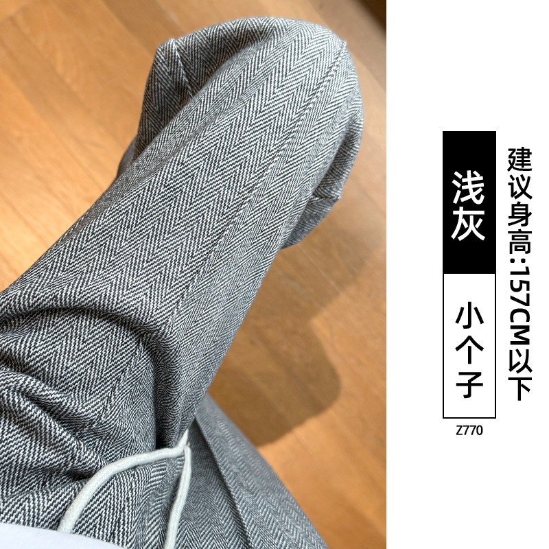 レディース用ヘリンボーンフリース裏地ワイドレッグパンツ2025年秋冬新スタイルウールスリットパンツストレートレッグナローフィットバナナパンツ