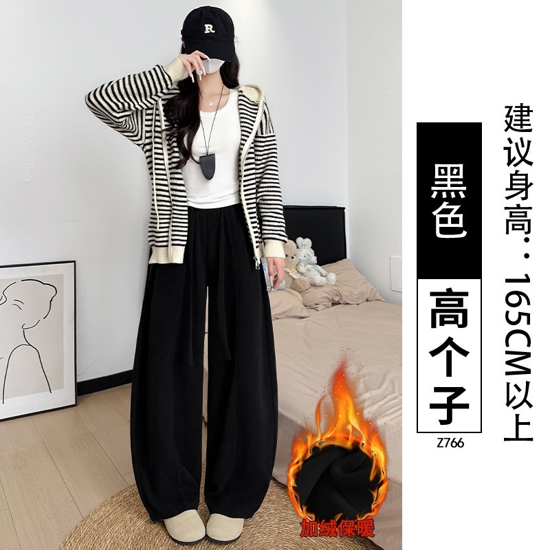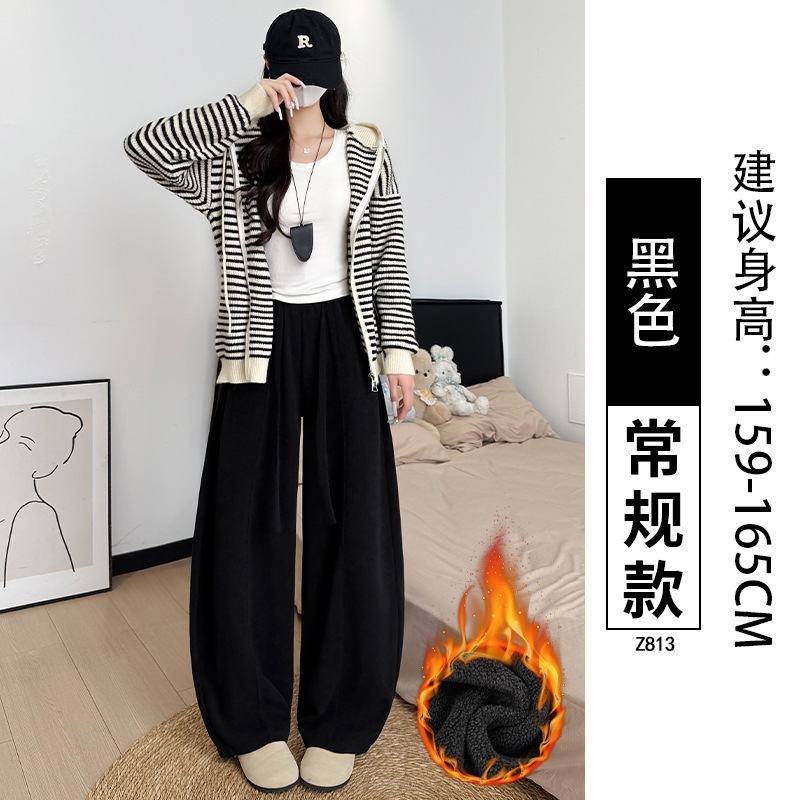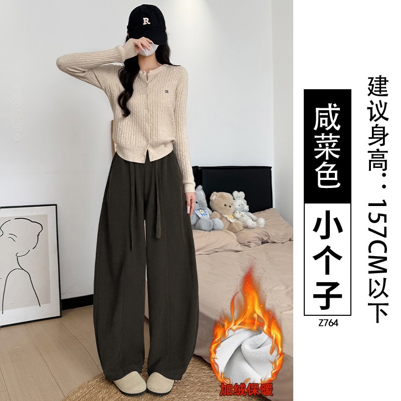レディース グレー フリース裏地 カーブパンツ 2025年秋冬新作 厚手コーデュロイパンツ 小柄 ゆったり ワイドレッグ 冬パンツ