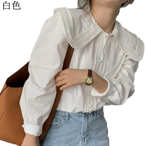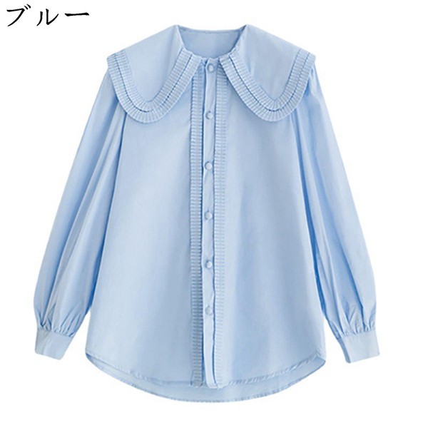 [出荷が早い]ブラウス 長袖 ビッグ襟 丸襟シャツ トップス ボリューム レディース フリル ビッグ衿 オーバーサイズ 韓国 かわいい 柔らか おしゃれ値引きして売る