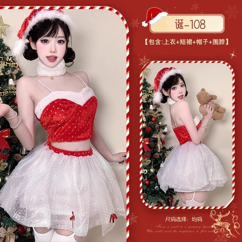 サンタコスプレ 新作 クリスマス クリスマス 舞台 パフォーマンス 服 セット レッド 新年 クリスマス スリム レース スカート 制服