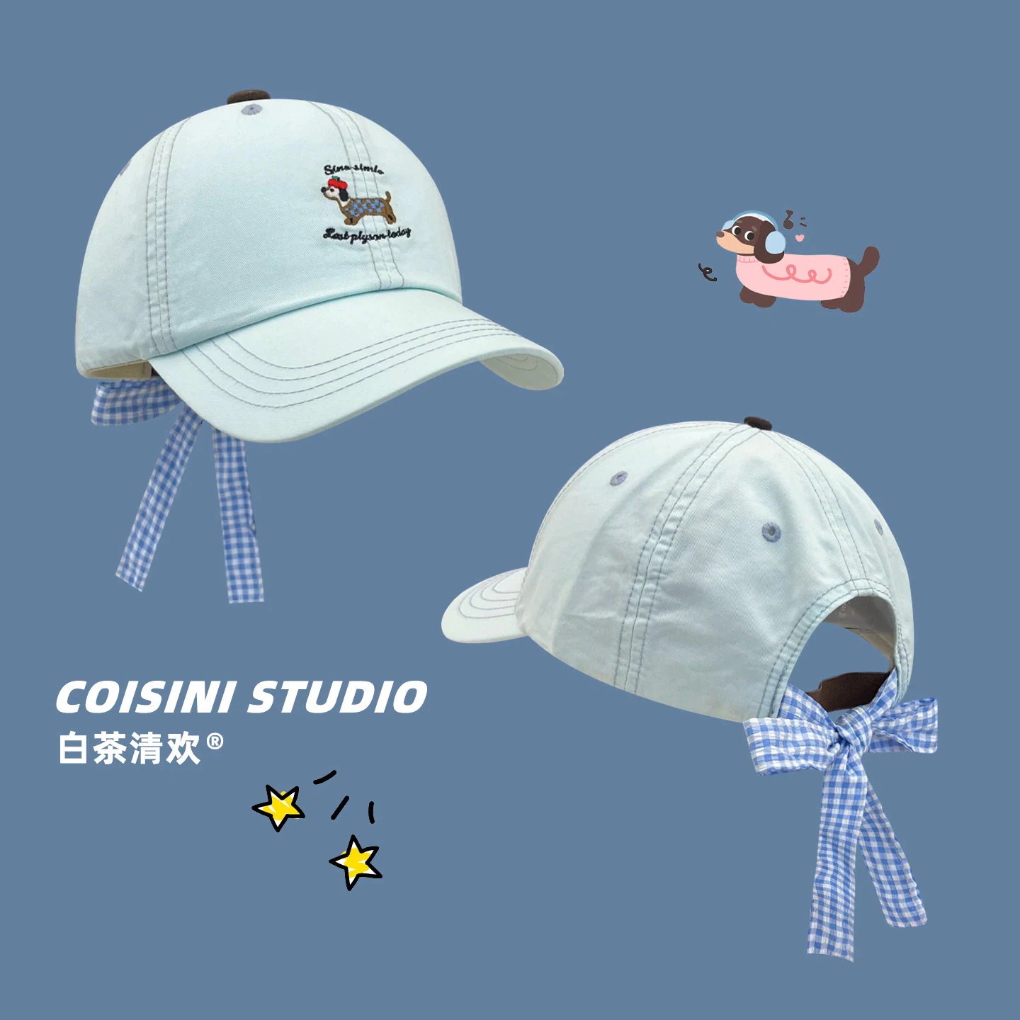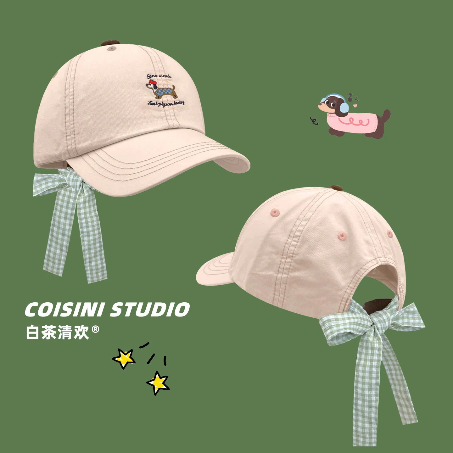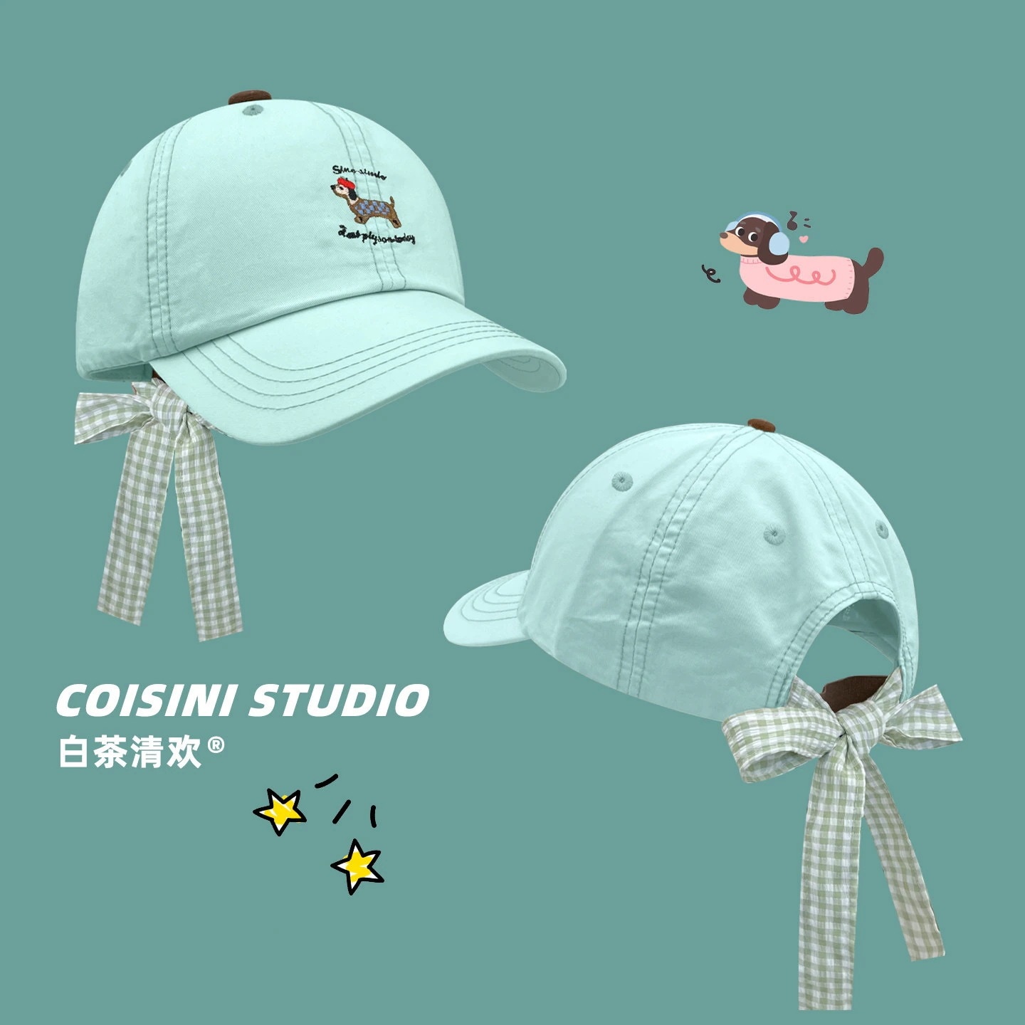 【人気アイテム】小顔効果キャップ キャラクター 子犬 リボン チェック柄 ストラップ 刺繍 ベースボールキャップ レディース 韓国 春夏 どんなスタイルにも合う 小顔効果 キャップ キャップ帽