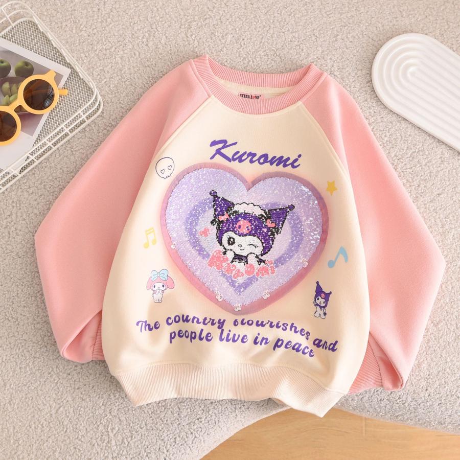 クロミ/マイメロ パーカー キッズ 長袖 子供服 スウェット ガールズ スパンコール 柄替え トレーナー 秋冬 春 秋 ピンク/パープル 暖かい 綿100%