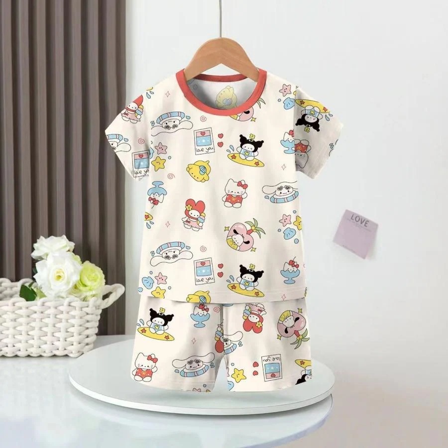 パジャマ 子供 夏 クロミ シナモンロール キティちゃん マイメロ キッズ 上下セット 半袖 tシャツ 短パン 部屋着 可愛い キャラクター 男の子 女の子