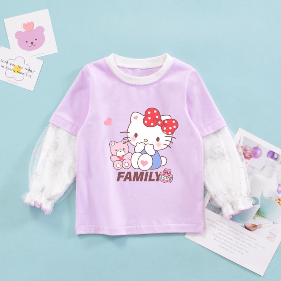 キティ 長袖 スパンコール tシャツ キッズ ふわふわ 綿 子供服 ガールズ スウェットシャツ インナーシャツ ピンク/ブルー/パープル