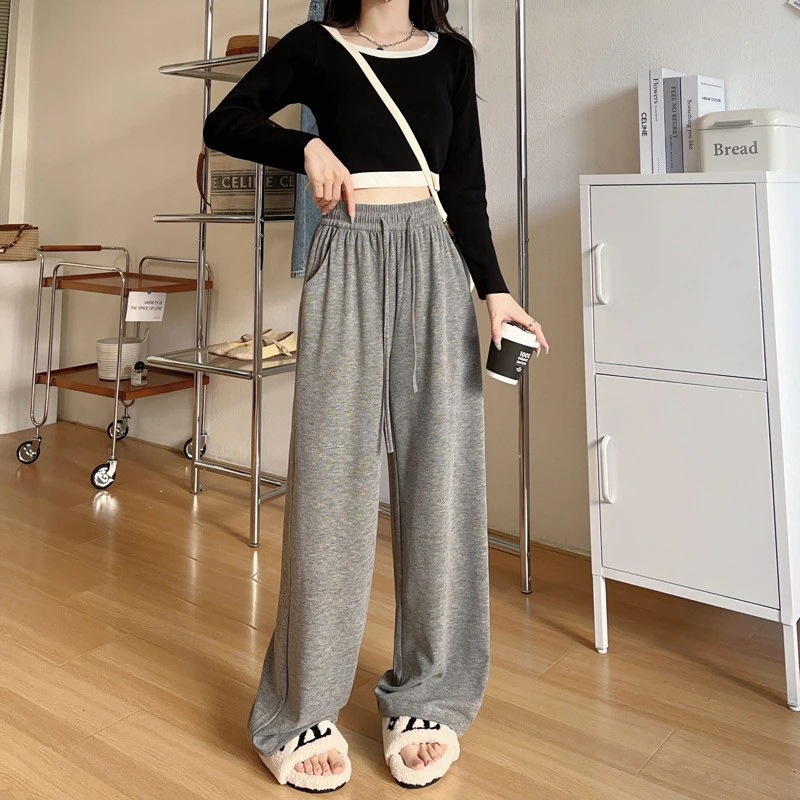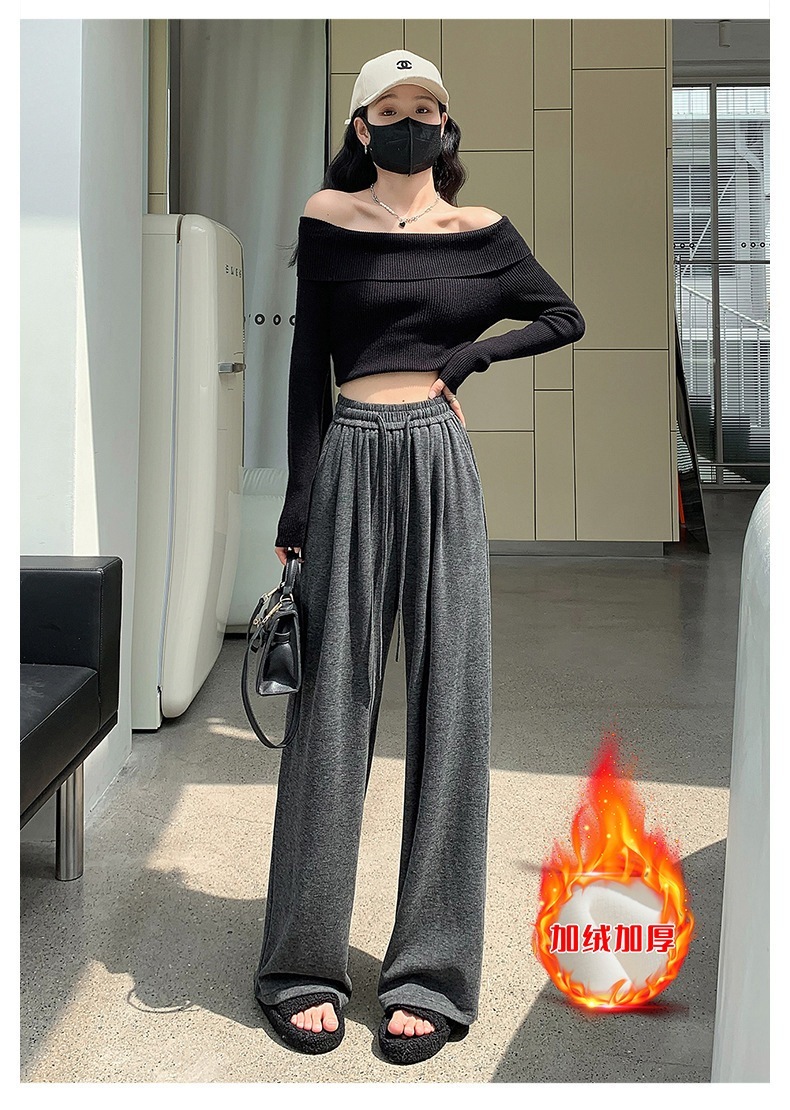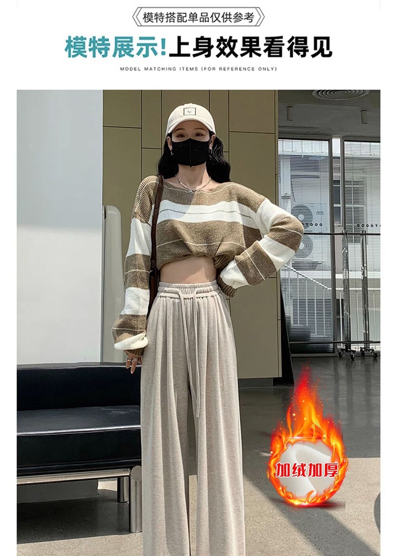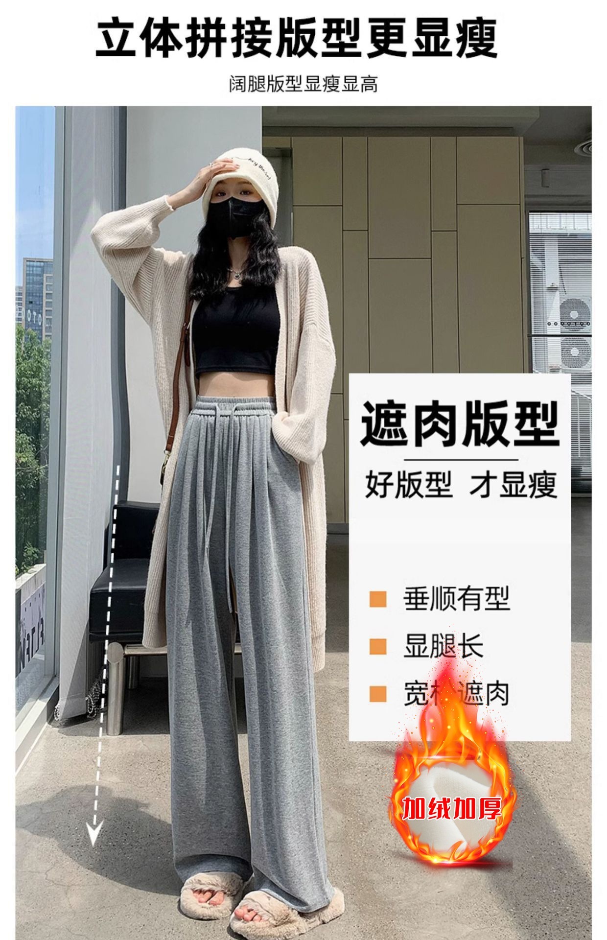 ホワイトオートミール柄 綿麻混紡パンツ 女性用 秋冬 新作 裏起毛 ストレートシルエット 垂れ感 ゆったり 厚手 ワイドレッグ カジュアルパンツ ロングパンツ