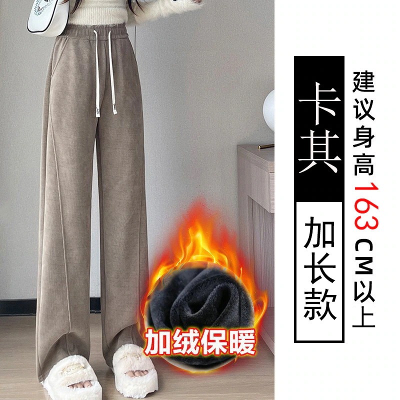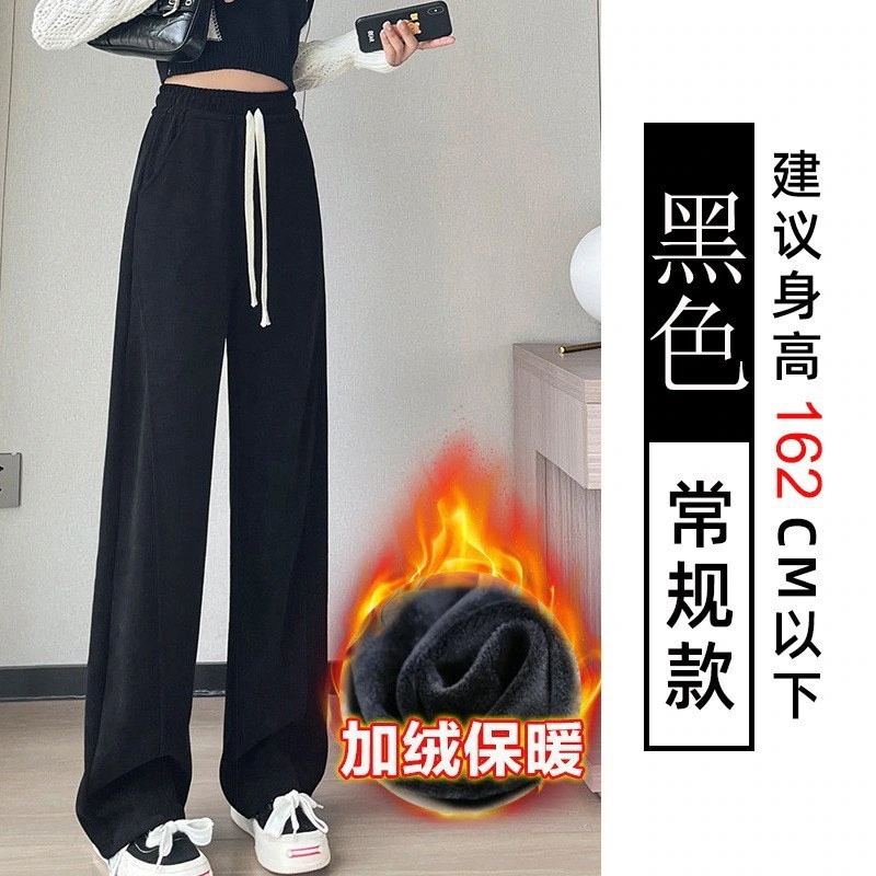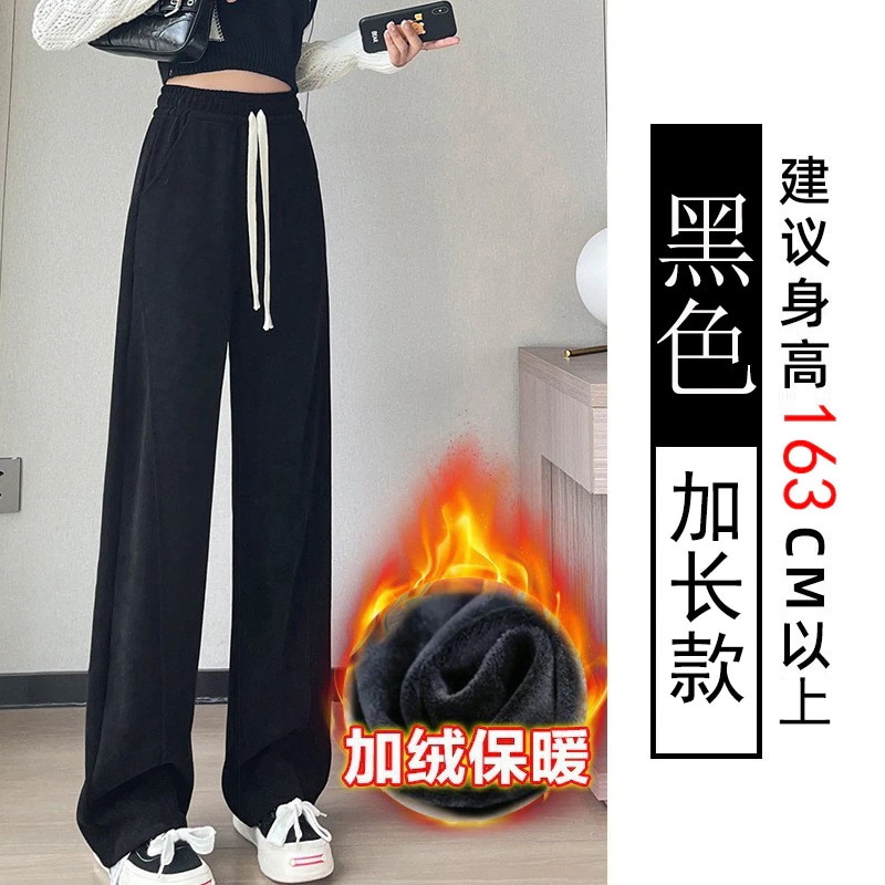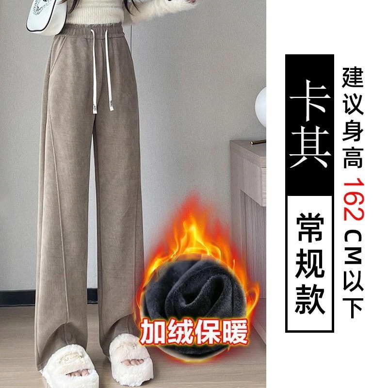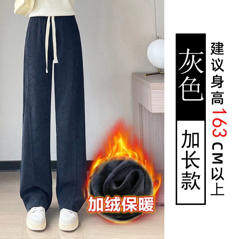 秋冬用裏地付き厚手脚長効果ワイドパンツ女性用 冬用ハイウエストゆったりシルエット痩せて見えるカジュアルパンツドレープ感バナナパンツロングパンツ