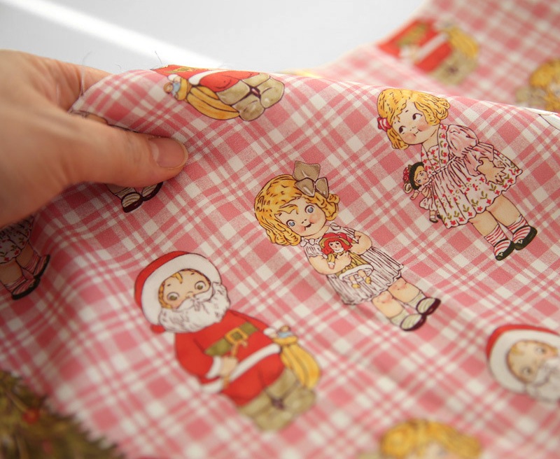 韓国生地 ヴィンテージ風 トマトガール クリスマス サンタクロース 女の子向け コットン100% シーチング 生地 Vintage Paper Doll 45cm x 110cm