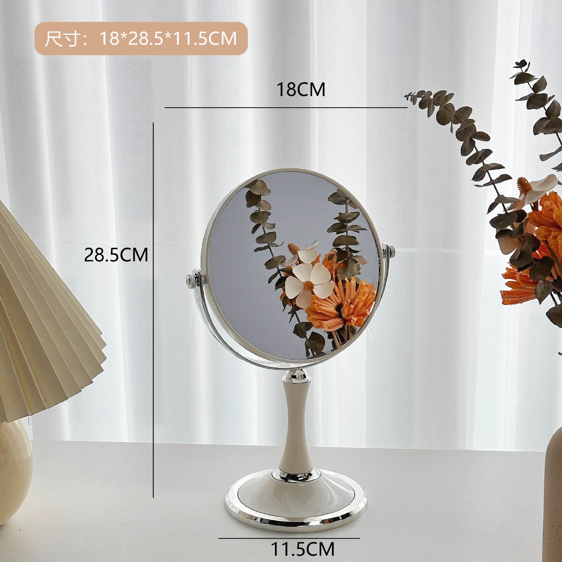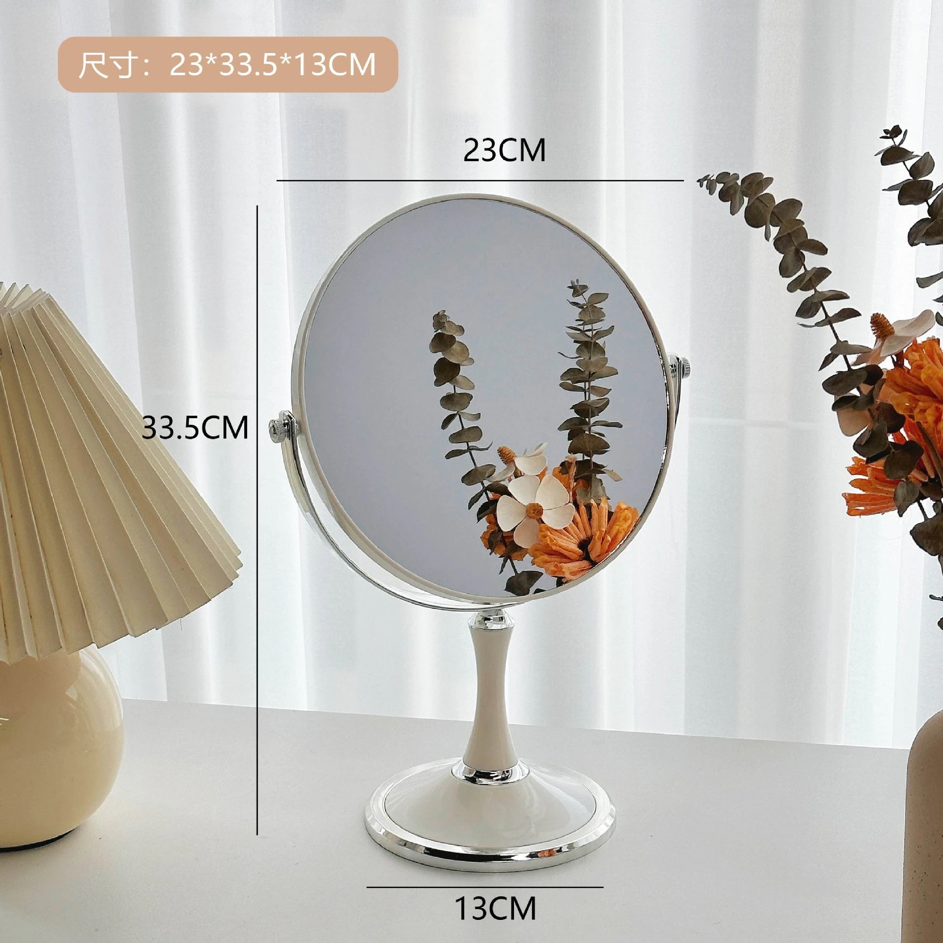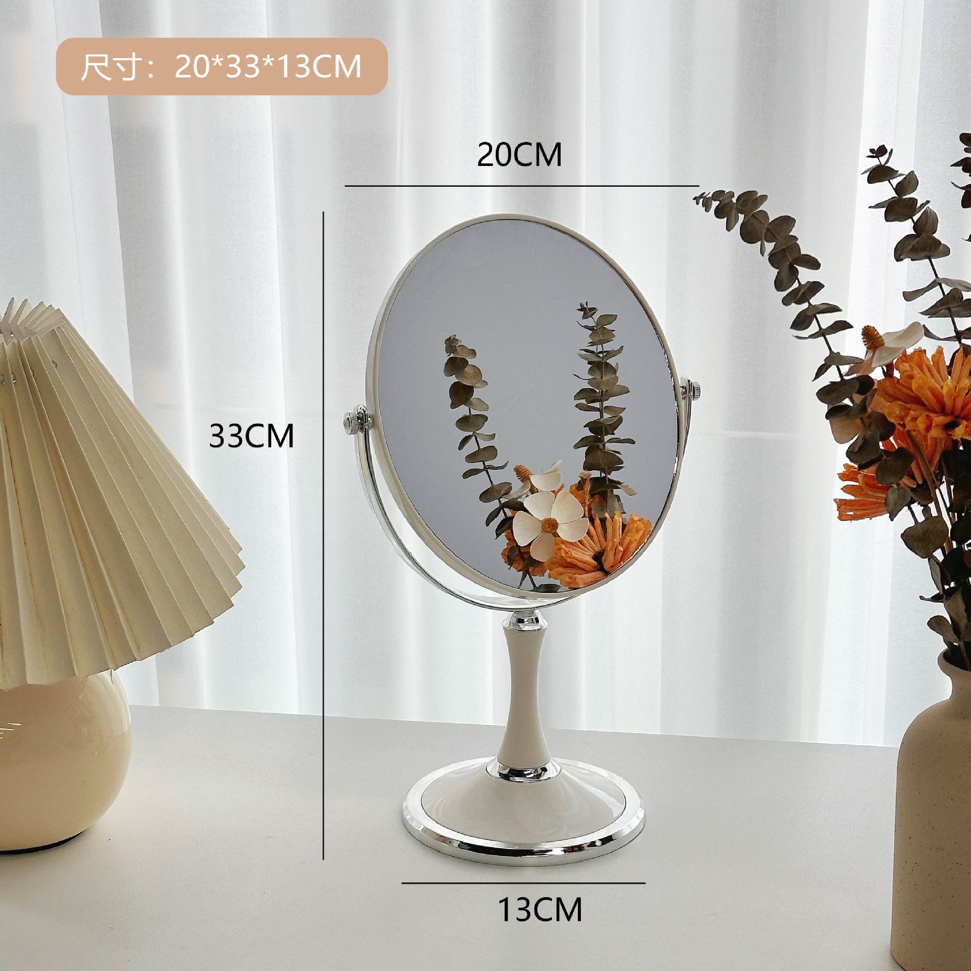 シンプルレトロインススタイルミラーデスクトップスタンド可能卓上化粧鏡寮両面ミラー片面拡大高画質