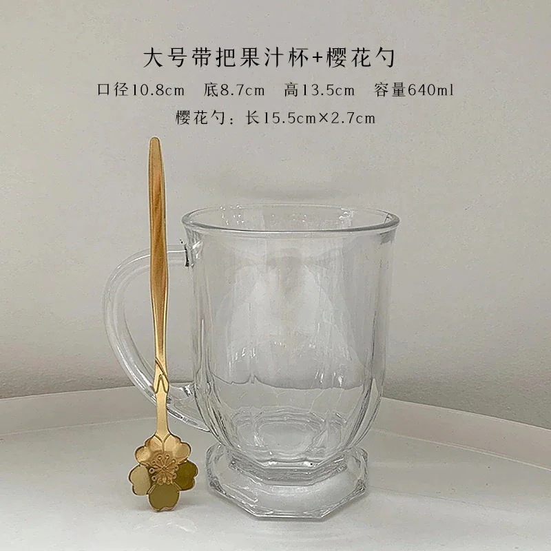 gulu Gulu ビッグマウスカップ 韓国風 大容量 ガラス製 高価値ジュースミルクカップ ハンドル付き