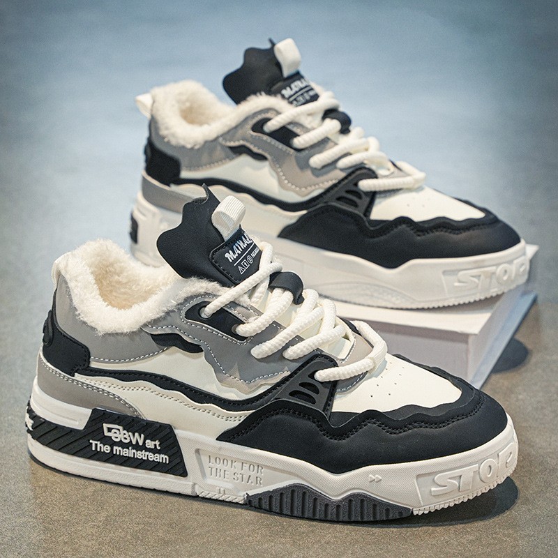 【春秋兼用】青少年向け防滑スポーツシューズ メンズフリース入り加厚カジュアルスニーカー