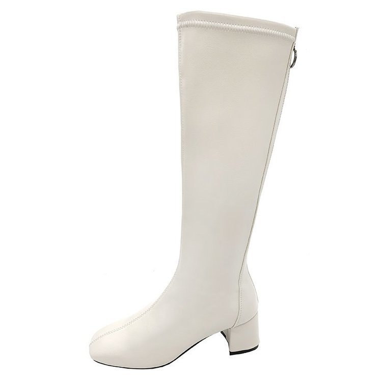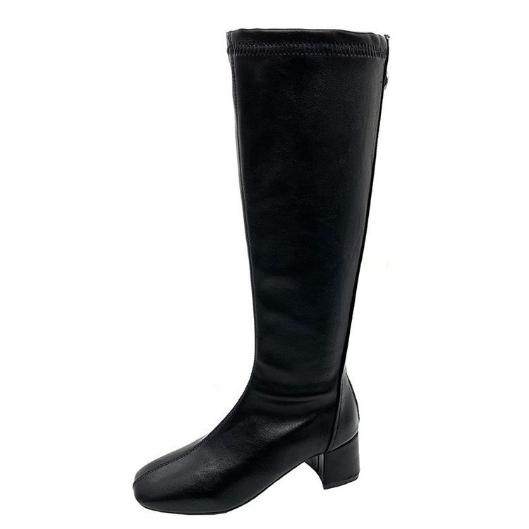 ロングブーツ女性用新作スクエアトゥバックジッパーハイカットブーツ 女性用太ヒールブーツ