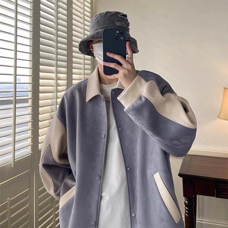 コントラストカラー ジャケット 秋トレンチコート ゆったり ジャンバー トップス 流行り おしゃれ 開襟 ベースボールジャージ 百掛け 港風 メンズ ins