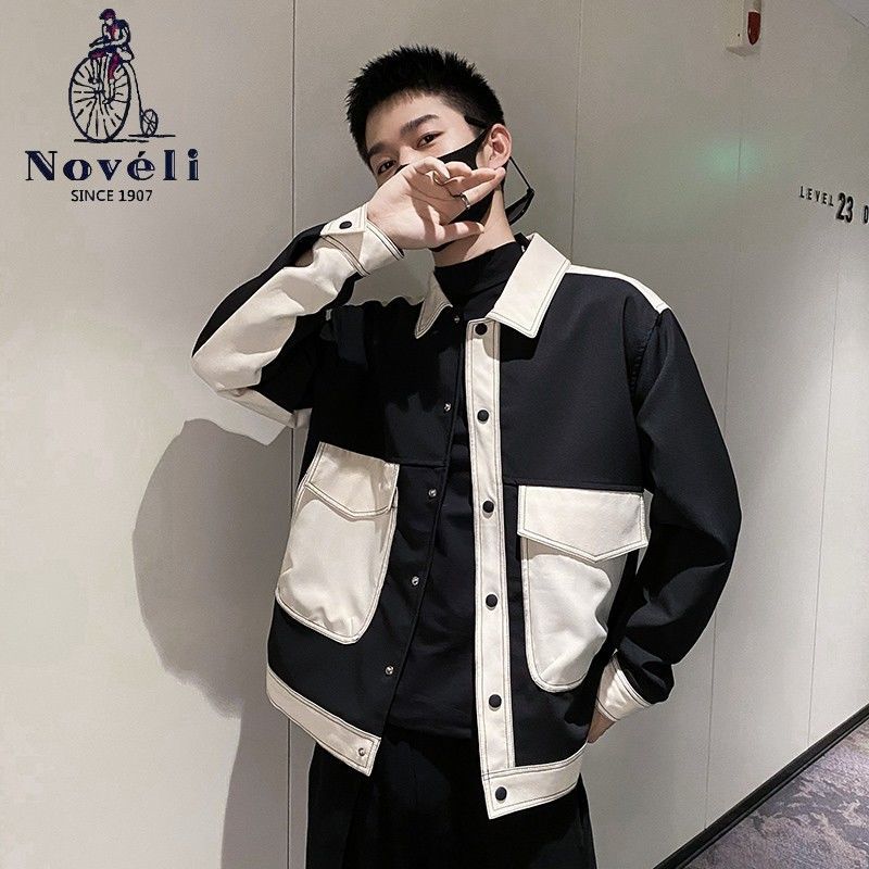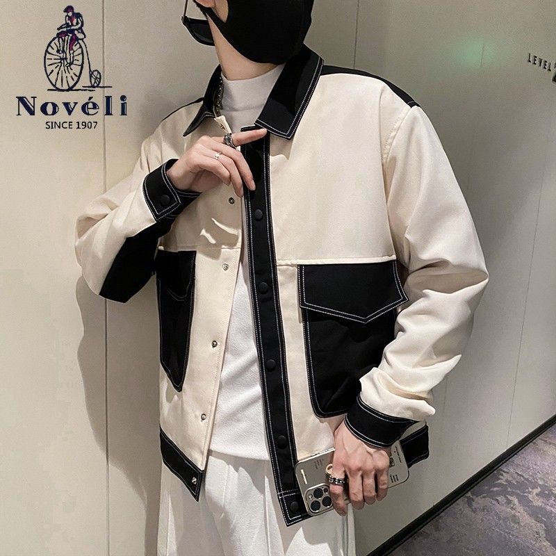 ジャケット ジャンバー 秋トレンチコート日韓 メンズ トップス 百掛け ins コントラストカラー 港風 おしゃれ ゆったり 開襟 流行り