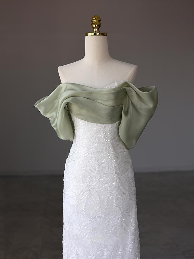 オフショルダーのスパンコールのイブニングドレス洗練された豪華なニッチな高級フレンチスタイル宴会や花嫁乾杯に最適です