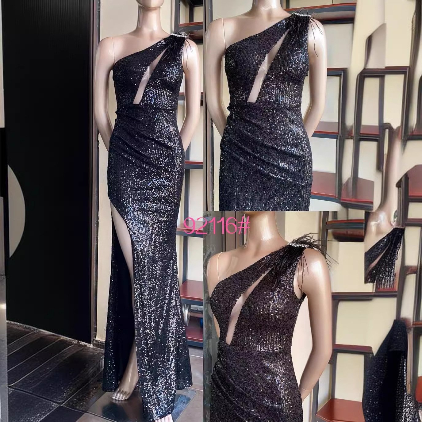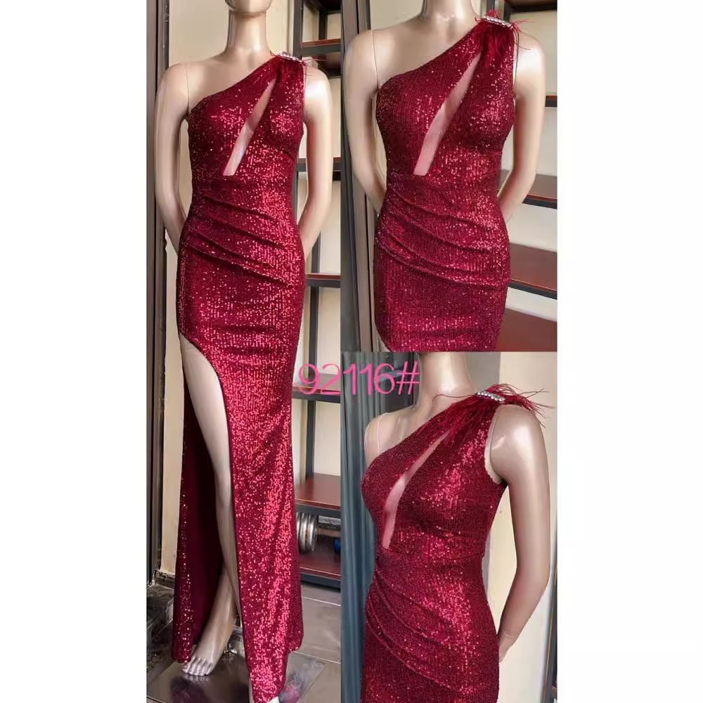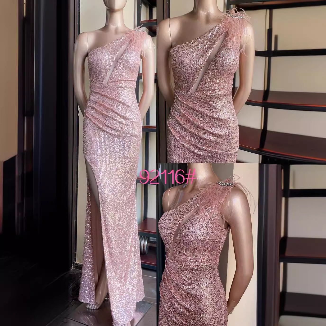 EVENINGエレガントなホステス スタイルセクシーなワンショルダーの重厚なシルバーのスパンコールがついた女性用のロング バンケット マーメイド イブニング ガウン
