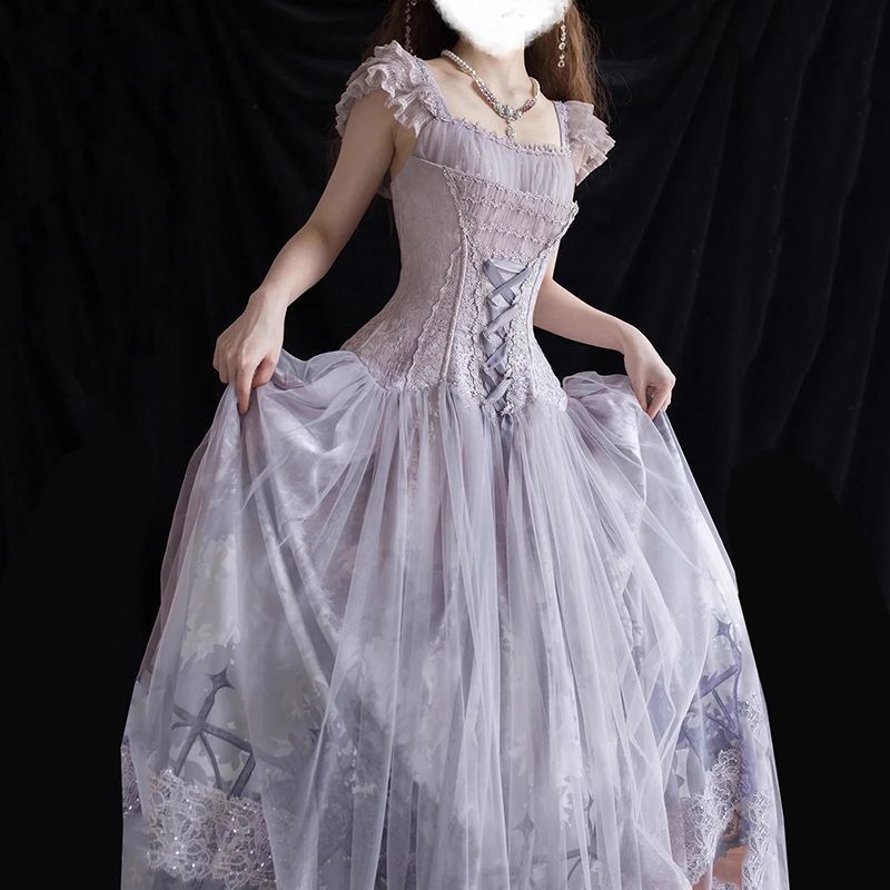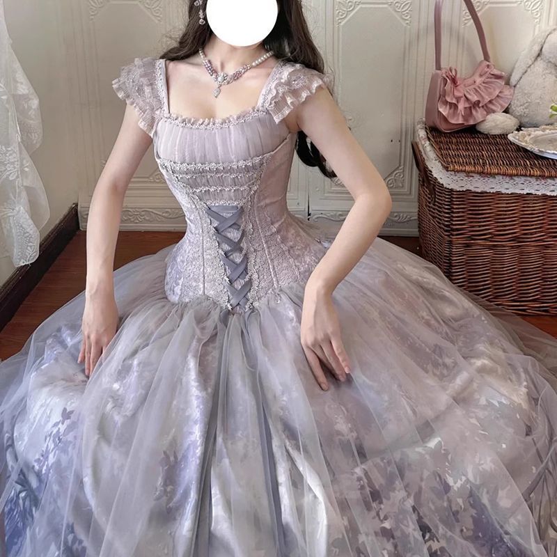 雨に濡れた藤のロリータドレスロリータイブニングドレス女子学生の卒業式ドレス普段着ドレス