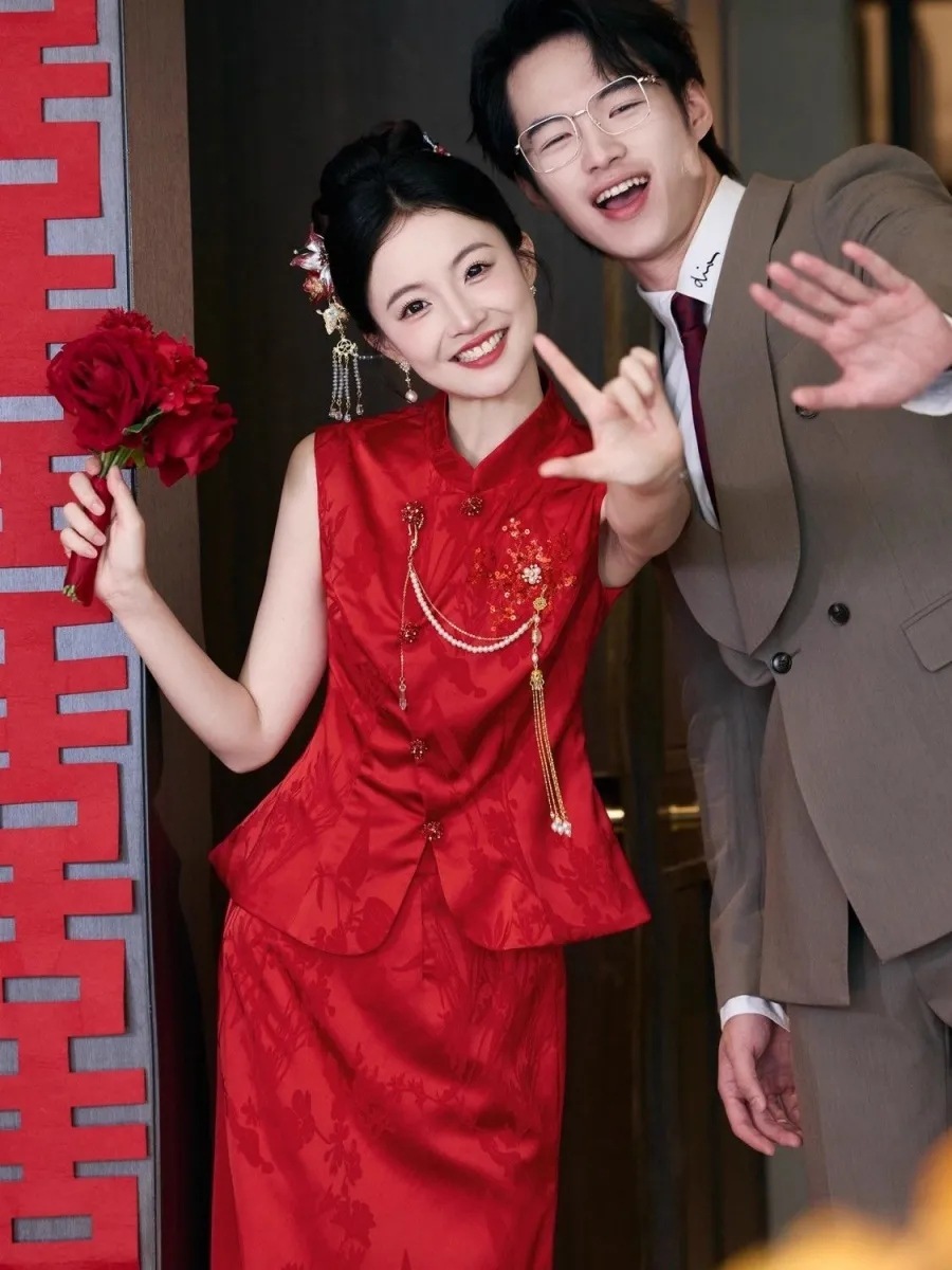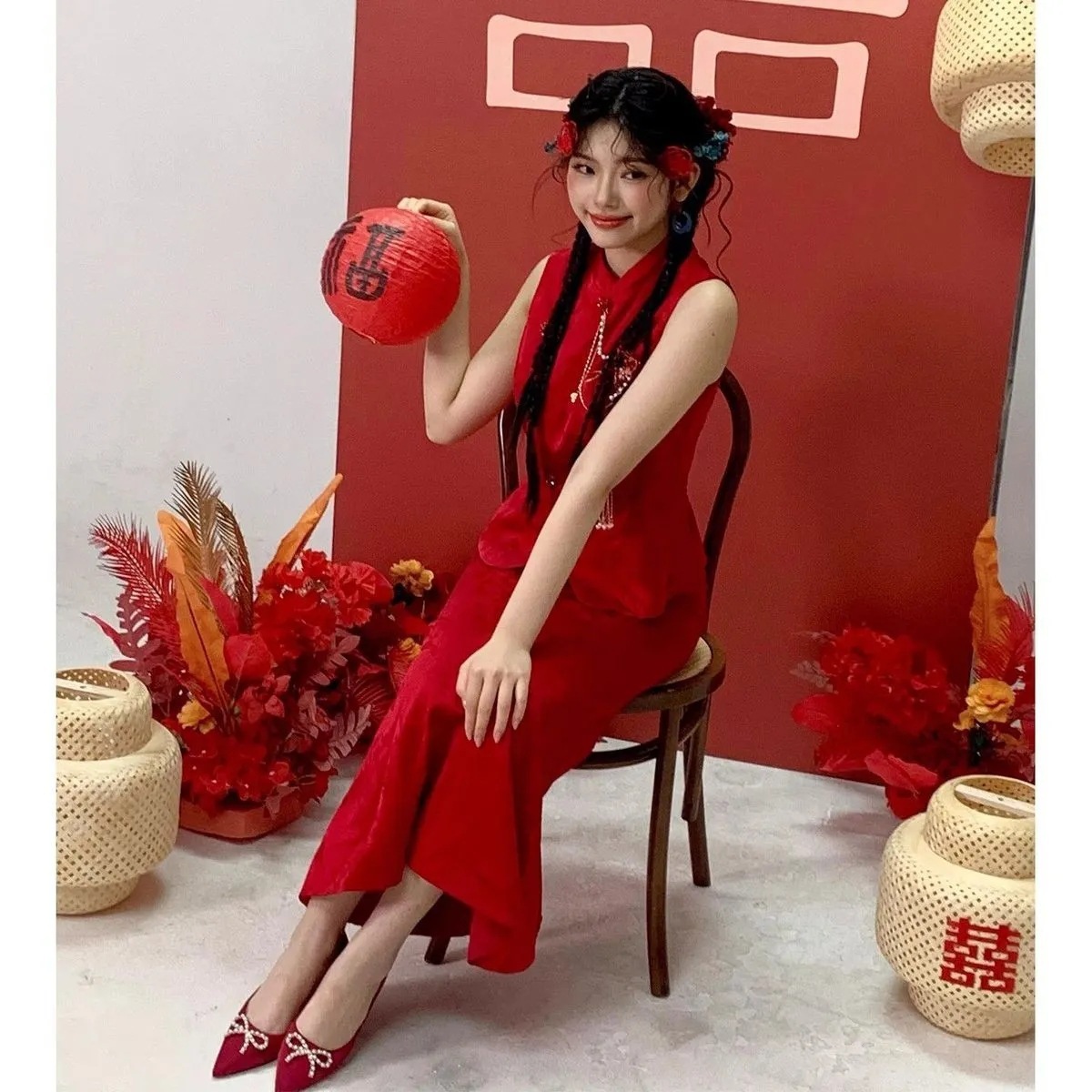 小柄な花嫁のための乾杯ドレスモダンな中国風の婚約ドレス赤いチャイナドレスモーニングローブ帰国の感謝の宴会