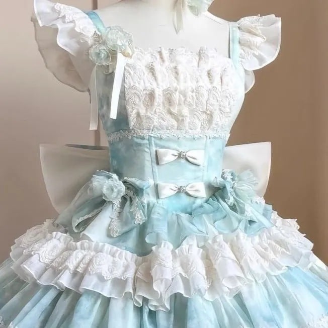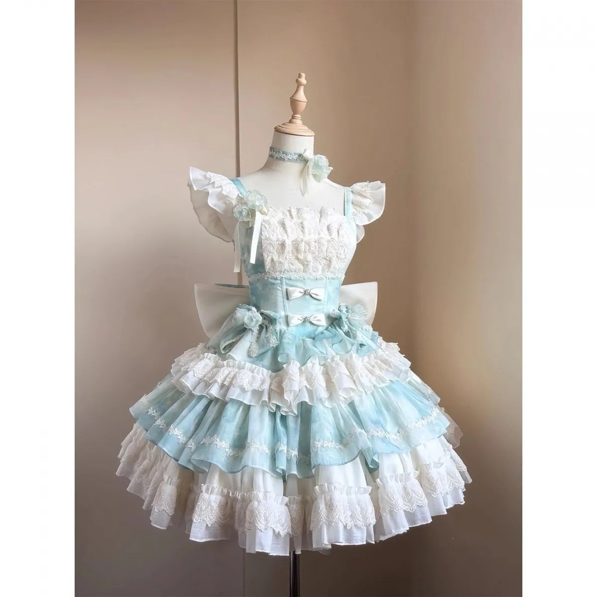 グリーンに染めたバレエ風のロリータ風ドレス女の子の誕生日デートや豪華なケーキドレスです