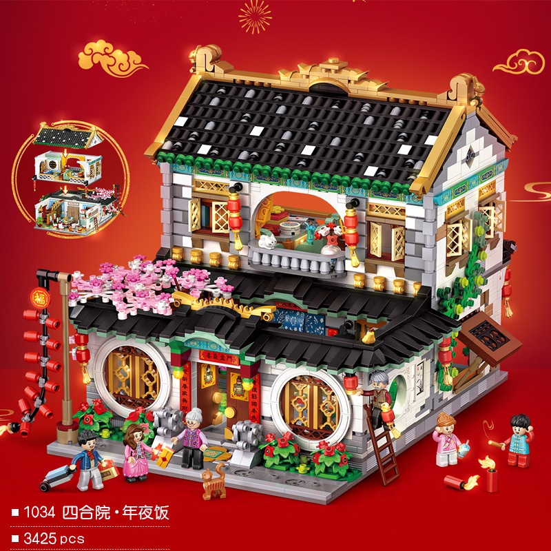 大晦日のディナー新年の中庭のギフトボックス新年のビルディングブロックの小さな粒子の組み立て大人の使用済みおもちゃ