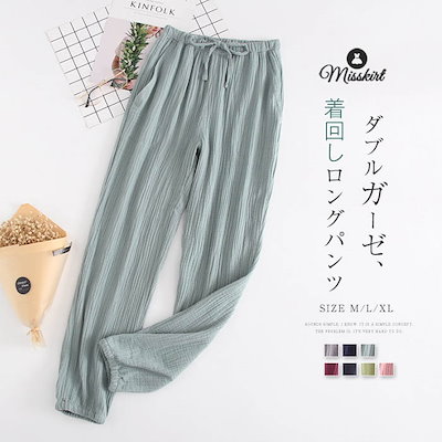 再販未定2重ガーゼ 綿 パンツ ルームウェア レディース メンズ ダブルガーゼ ロング 無地 薄手 ルームパンツ ルーム ガーゼ コットン 紐 クレープ カープル 男女 柔らか ゆったり シンプル 大