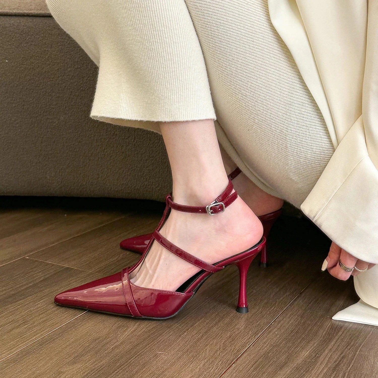 尖ったハイヒール女性新しいTストラップのバックエンプティサンダル サンダル スタイルアップ!ヒールパンプス 韓国ファッション