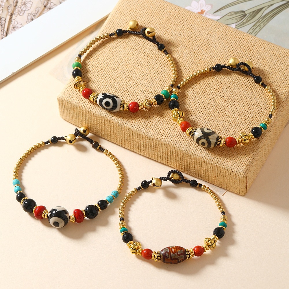 新作シンプルでスタイリッシュな手作りビーズブレスレット男女同款の瑪瑙とチベット天珠を使用アジャスタブル仕様