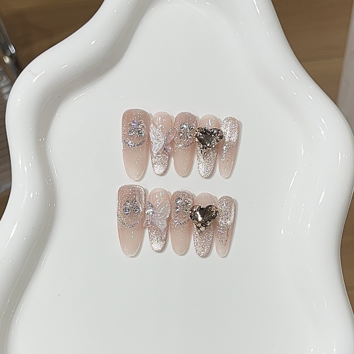 【星芒サイダー】ピュアリズム感超輝きグラデーションベアピンクキャットアイ クリアバタフライ K9 ハート付け爪