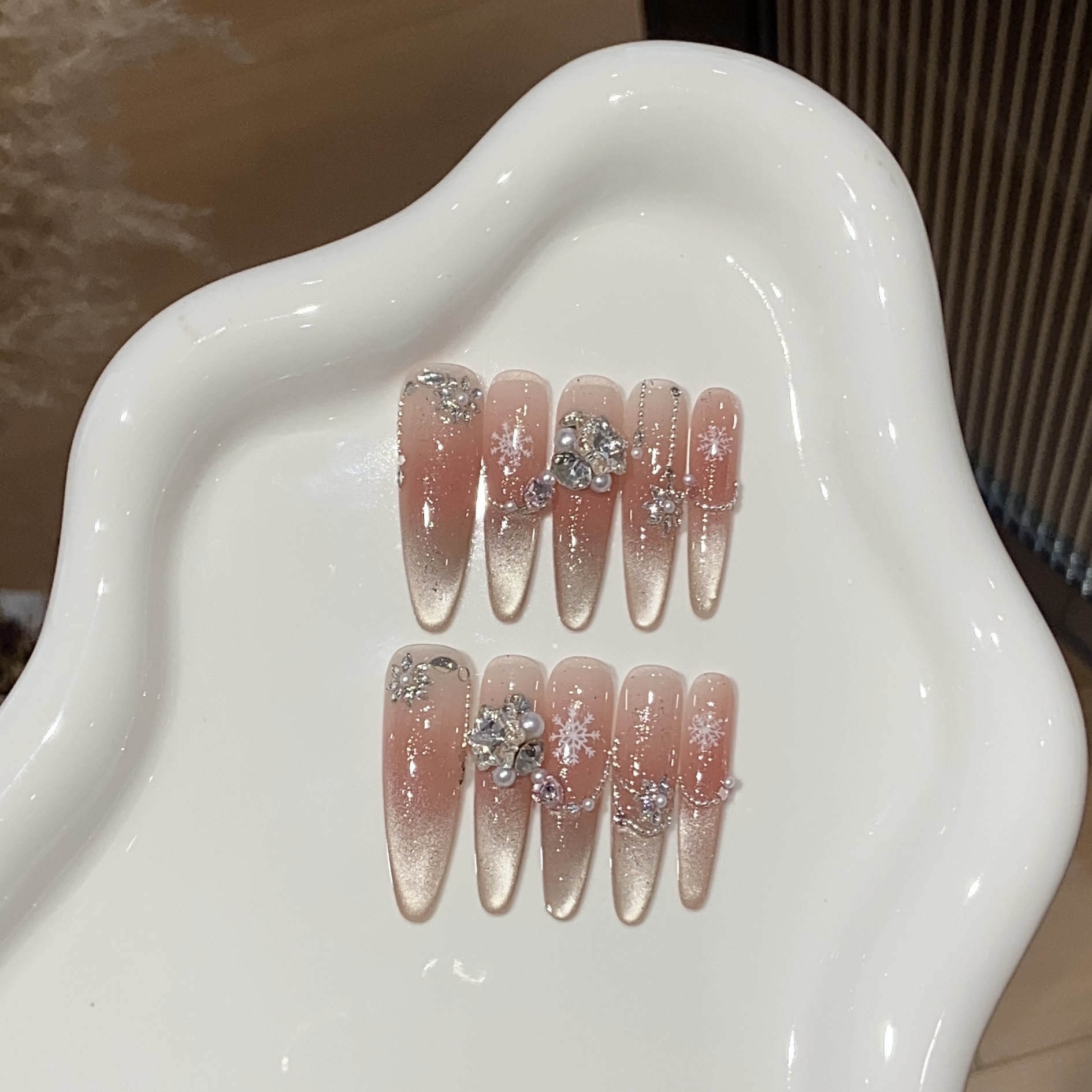 ネイル 冬ピュアリズムネイル クリアチークカラーグラデーションキャットアイ スノーパールスタックドリル 雪霊児(ゆきれいじ)