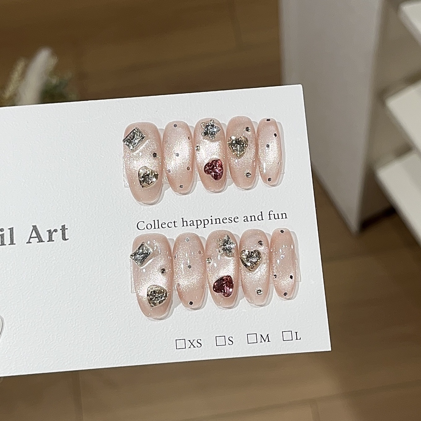 【ミルクフロストストロベリー】可愛いもちもち超輝きガラスビーズキャットアイ ハートドリルドット付け爪