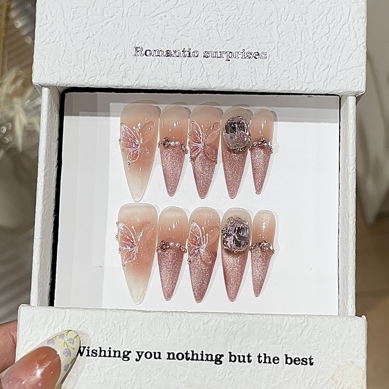 【バタフライパフェ】【Y】ピュアリズムレリーフ立体バタフライ クリアグラデーション ハイエンド付け爪